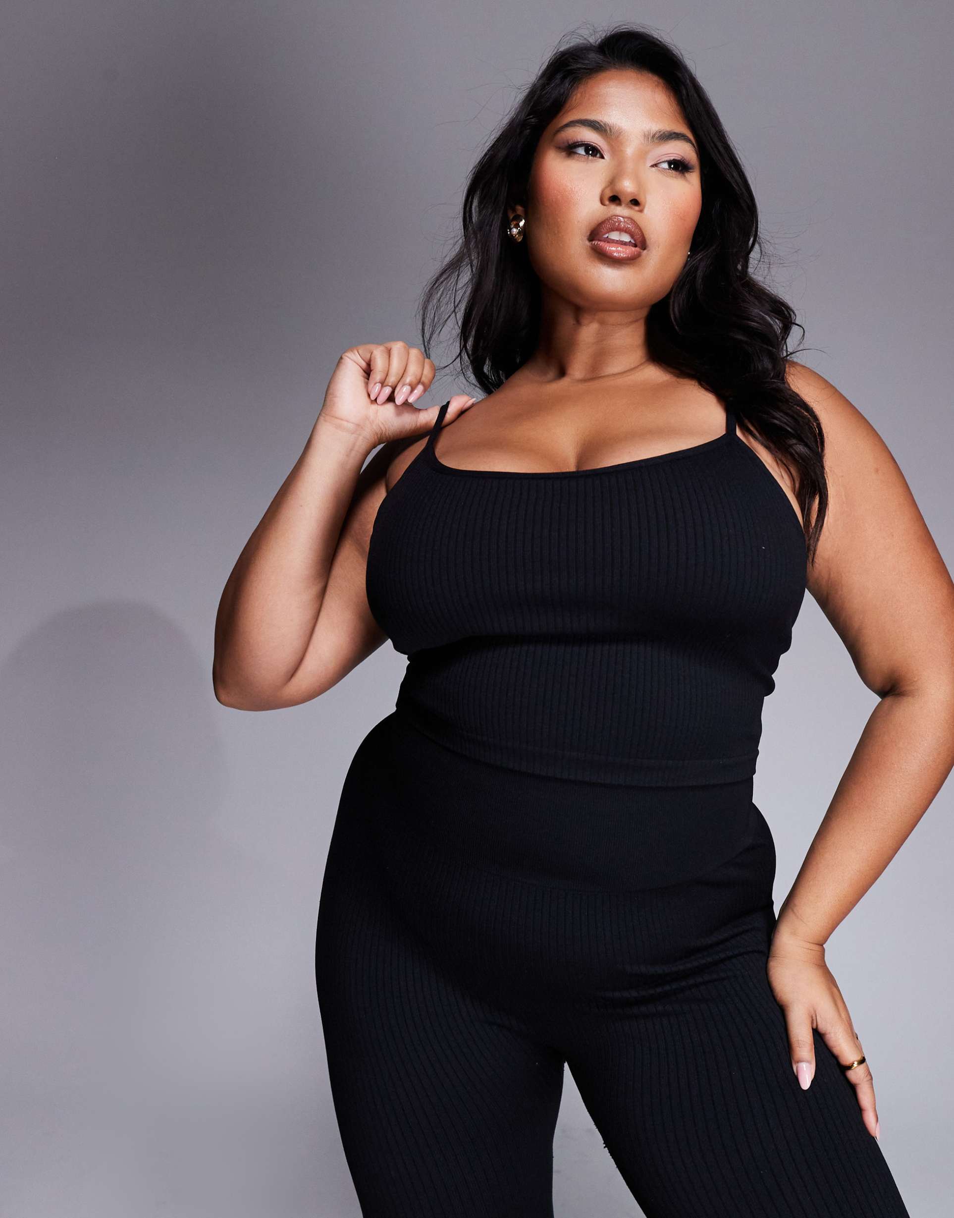 Soft ribbed jersey and a slim fit define this ASOS 4505 Icon Curve tank top, featuring a flattering scoop neckline and fixed wide straps. Designed with a seamless construction and an inner bra for comfort and support, this waist-length tank is perfect for workouts, athleisure days, or casual outings. Its stretchy polyamide and elastane blend ensures ease of movement, making it an ideal choice for all-weather wear. The sleek black silhouette adds a sporty chic vibe to your activewear collection.