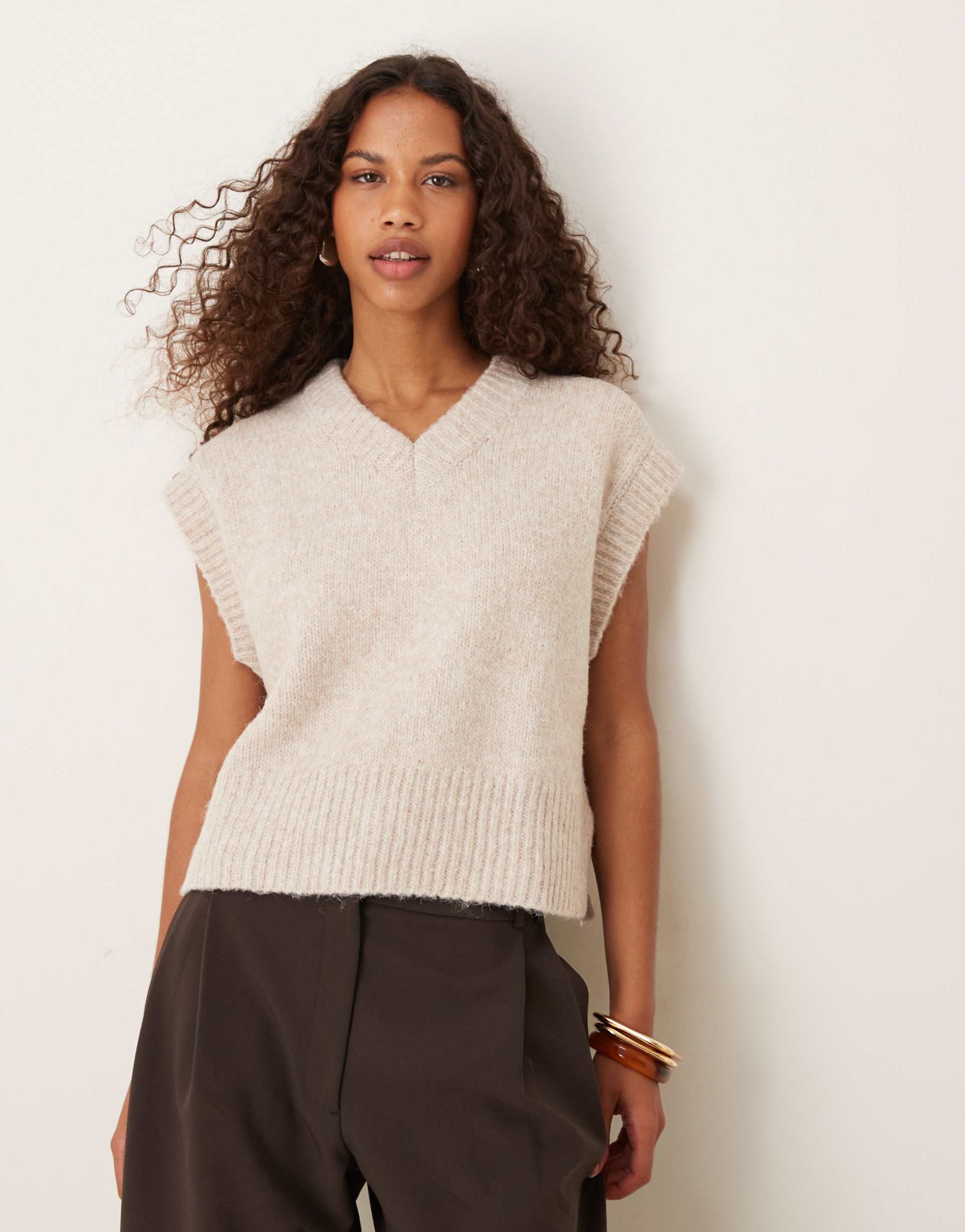 ASOS DESIGN BOXY FLUFFY V NECK TANK TOP IN OATMEAL