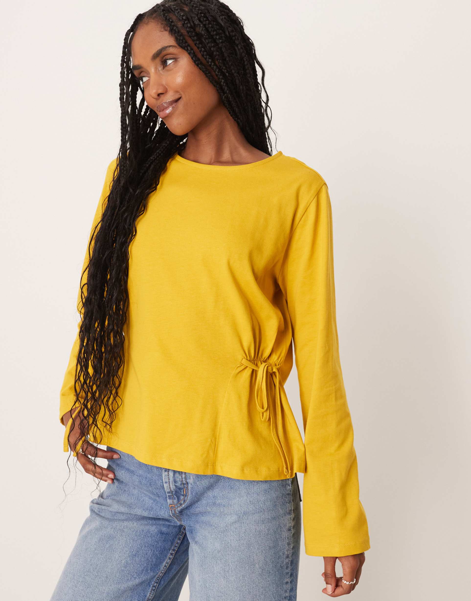 ASOS DESIGN CINCHED TIE SIDE LONG SLEEVE TOP IN OCHER