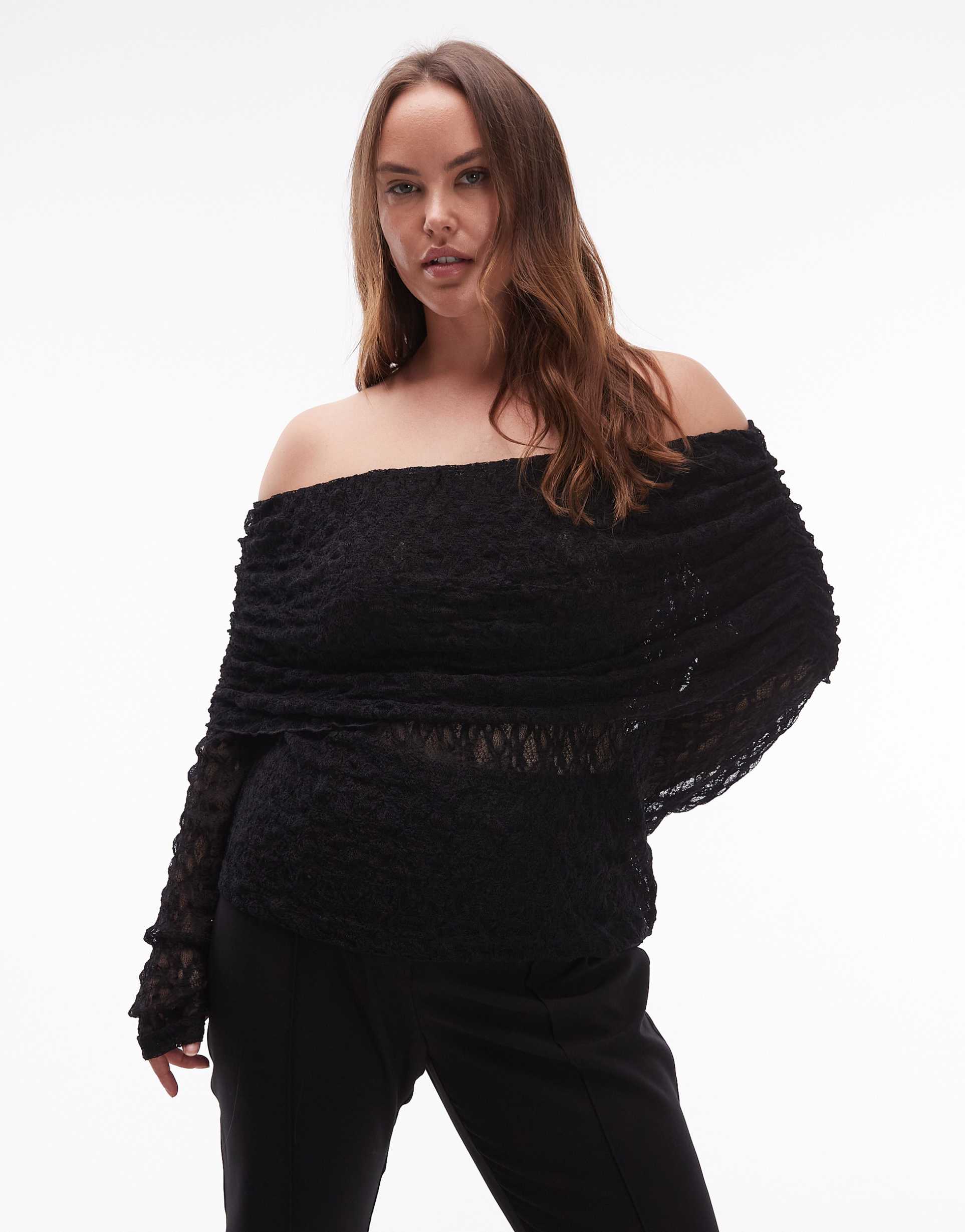 ASOS DESIGN CURVE LACE FOLD OVER OFF THE SHOULDER TOP IN BLACK