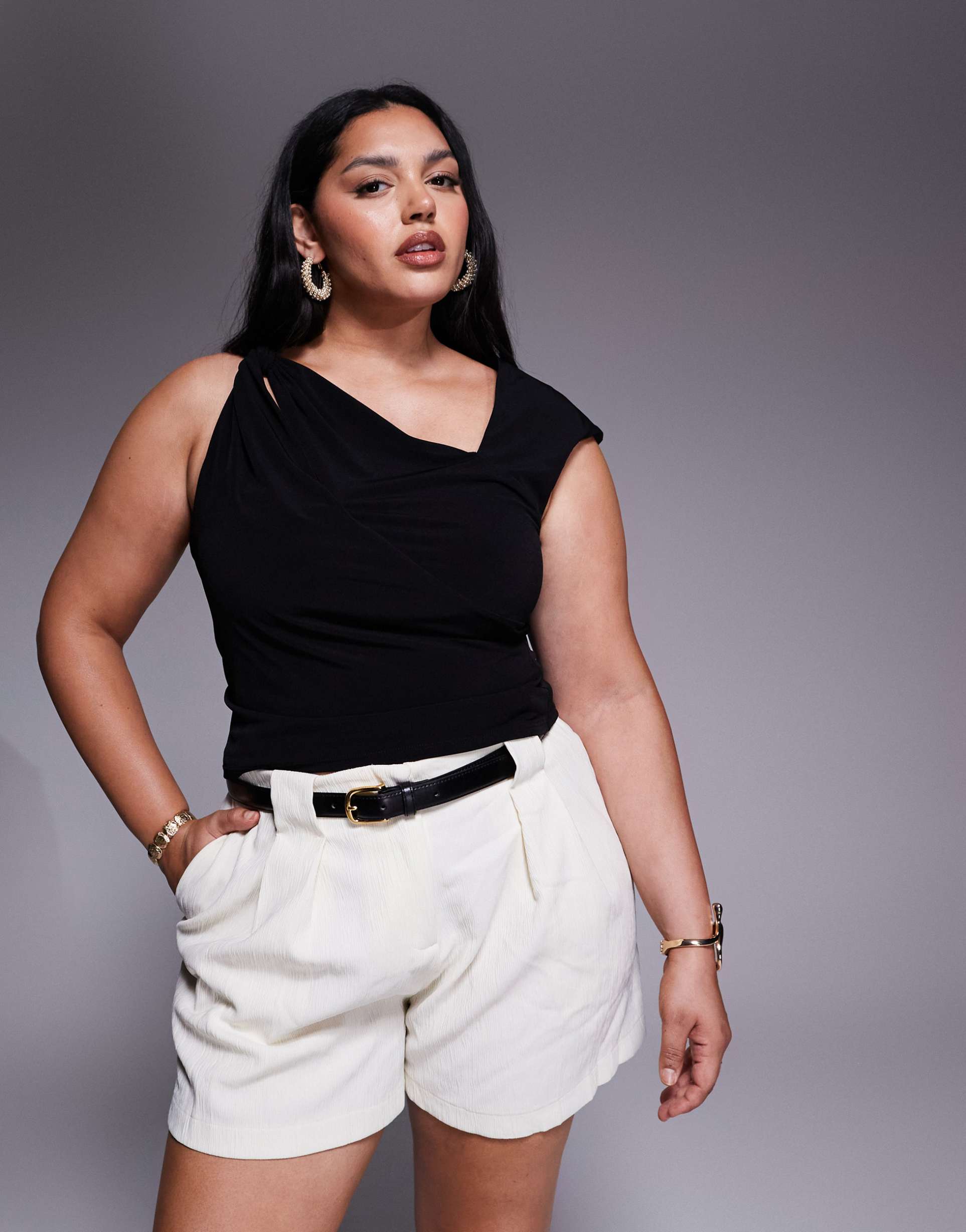ASOS DESIGN CURVE OFF SHOULDER TRIM DETAIL TOP WITH CUT OUT IN BLACK