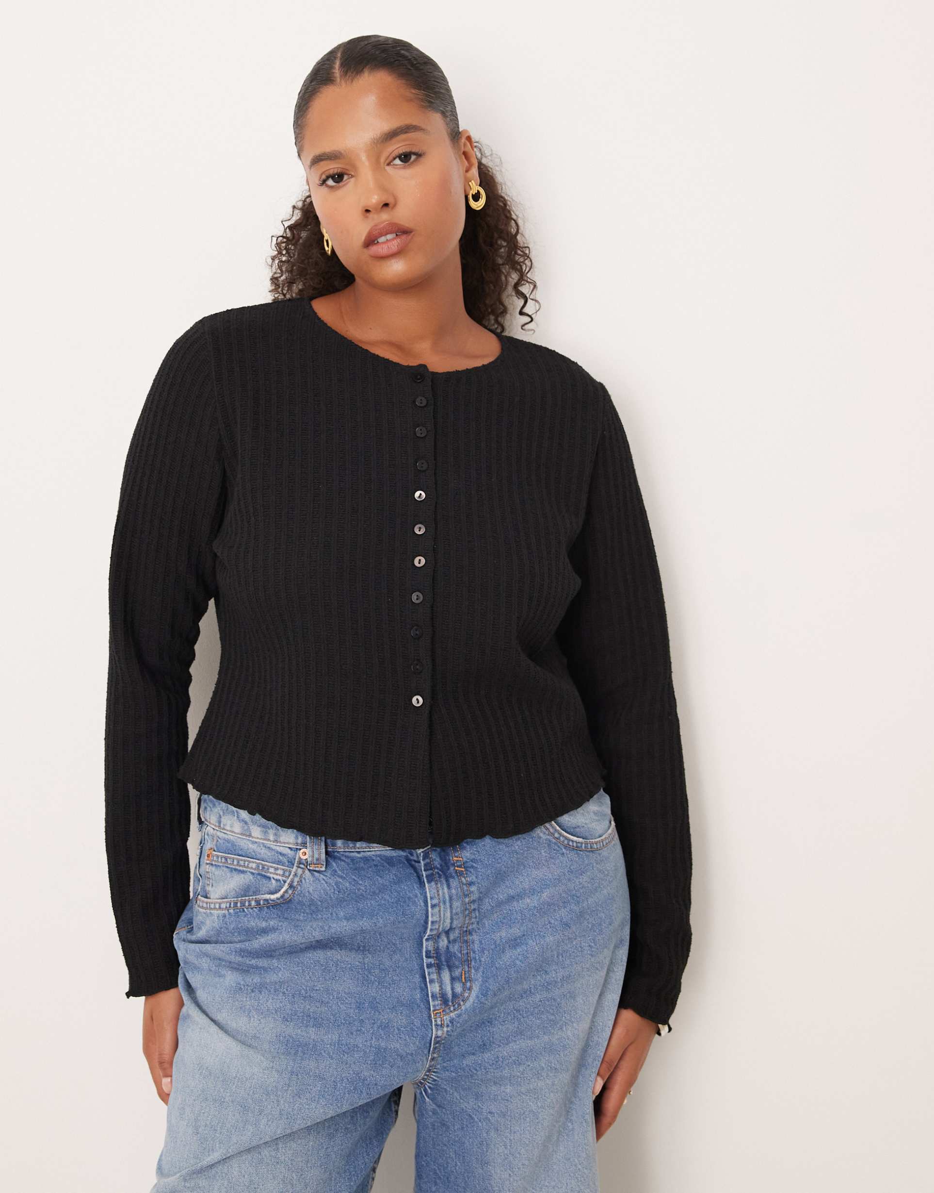 Soft ribbed knit fabric and a classic button-up front define this ASOS DESIGN Curve long sleeve top in black. Featuring a round neck and regular fit, this hip-length shell offers everyday comfort with subtle texture for added depth. Ideal for layering or wearing solo, it suits casual outings, workwear, and business casual settings with ease. The long sleeves and covered back provide versatility across spring, autumn, and winter seasons, making it a staple piece in your wardrobe.