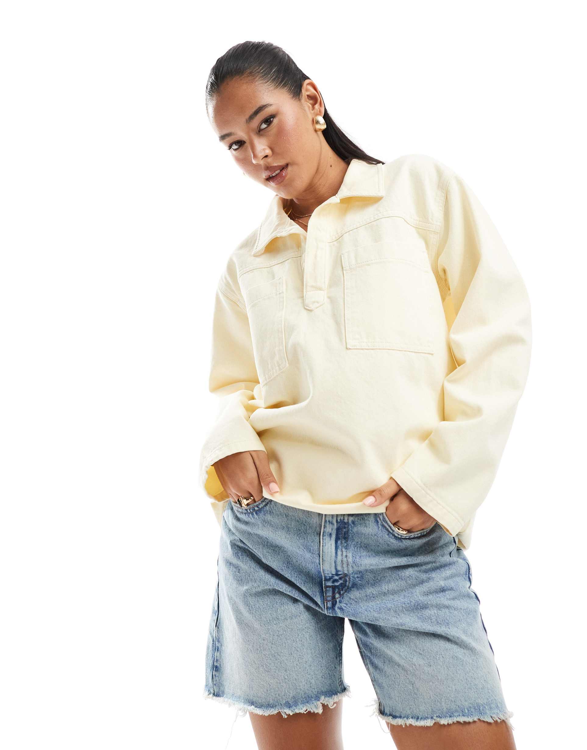 ASOS DESIGN DENIM RUGBY TOP IN BUTTER YELLOW