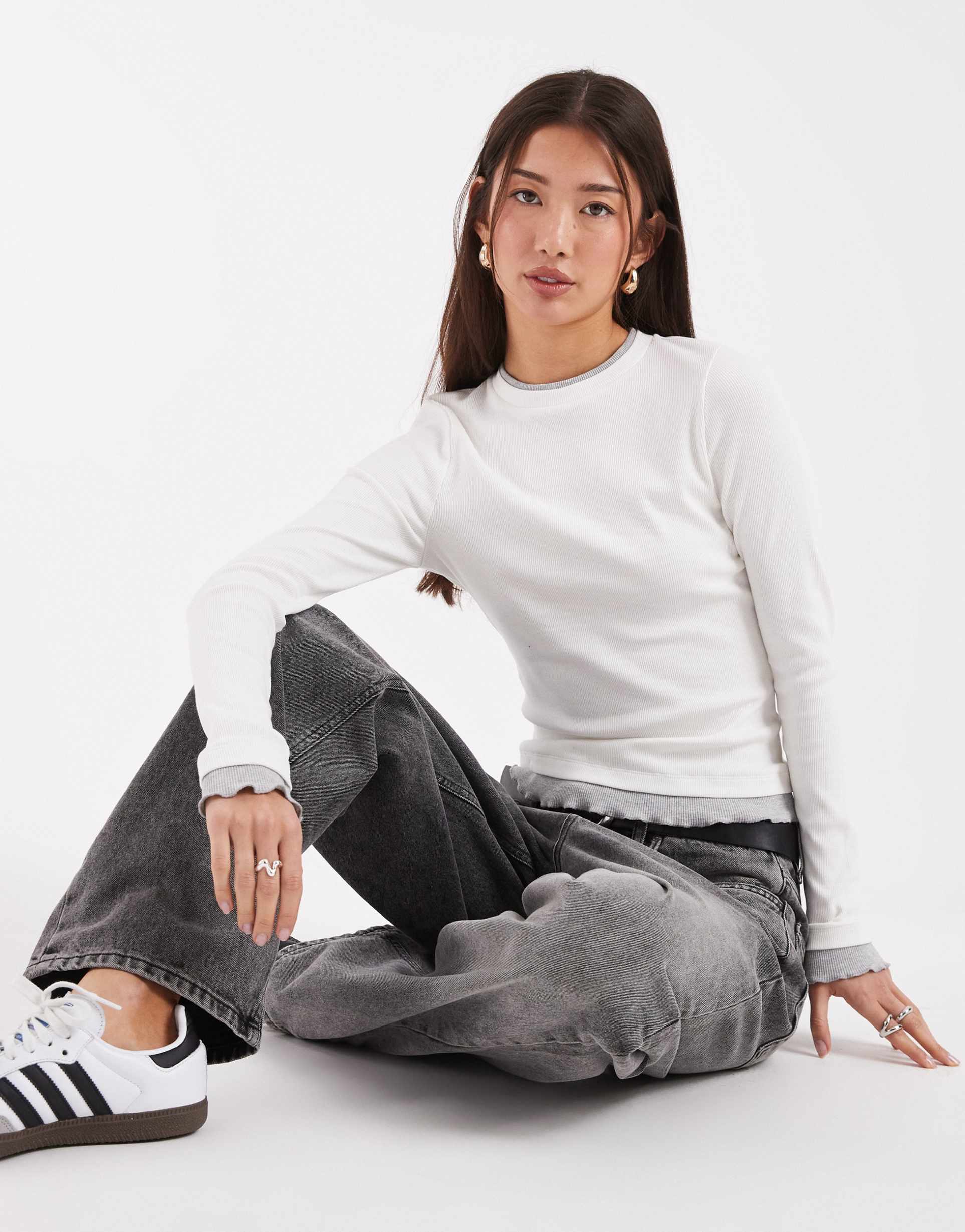 Soft, breathable cotton jersey meets a double-layer design in this ASOS DESIGN shell top. Featuring a classic crew neck and long regular sleeves, its regular fit and hip-length hemline provide comfortable everyday wear. The off-white hue and minimalist silhouette make it versatile for casual outings, business casual settings, or relaxed brunches. Slip it on easily with its pullover style and enjoy a clean, classic look that transitions effortlessly across seasons.