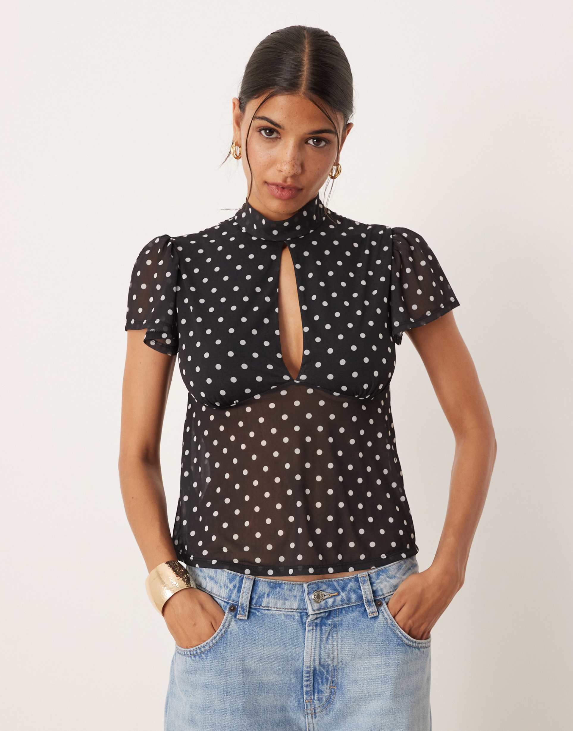 polka dot mesh top
