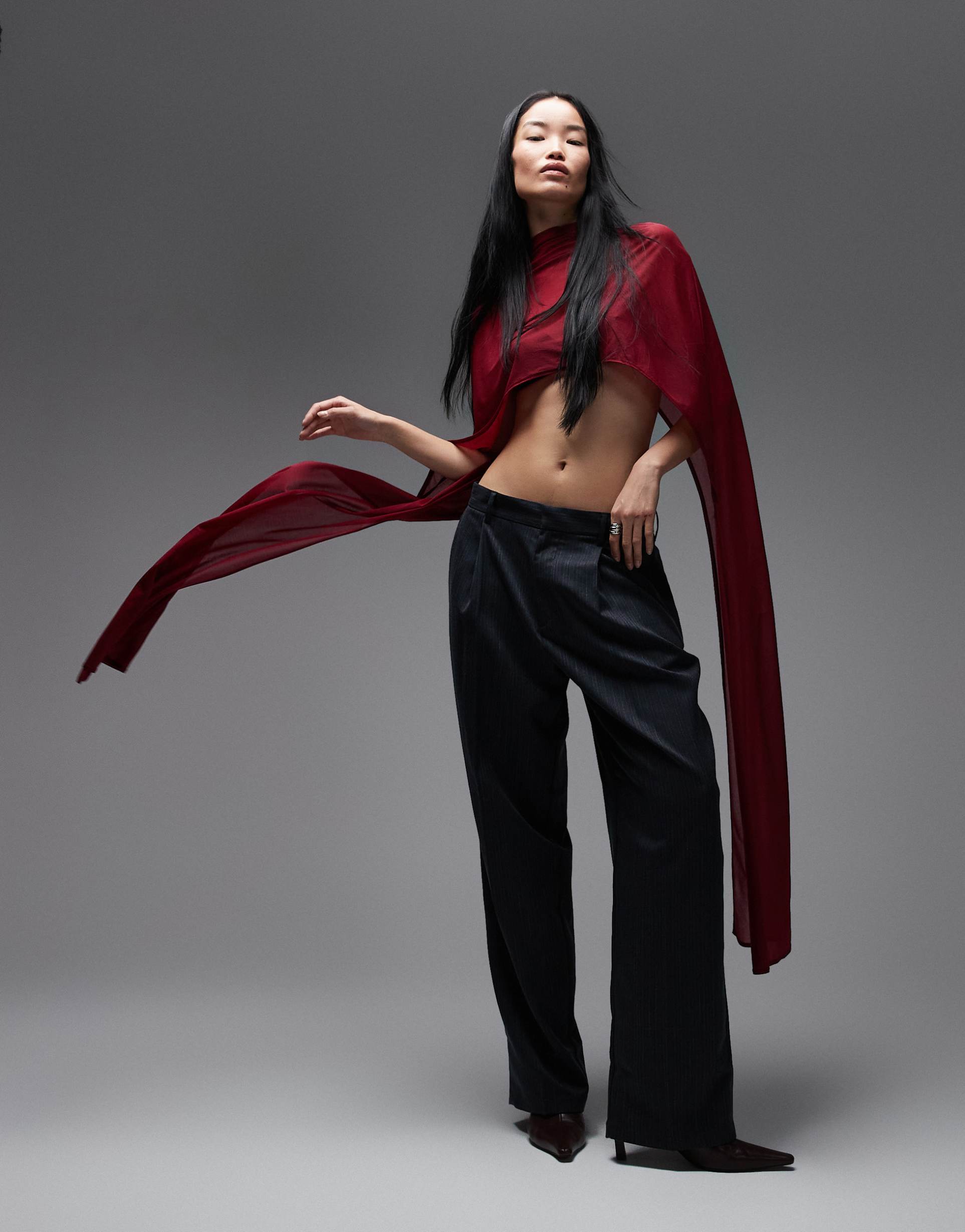 ASOS DESIGN FLOOR LENGTH MESH CAPE TOP IN BURGUNDY