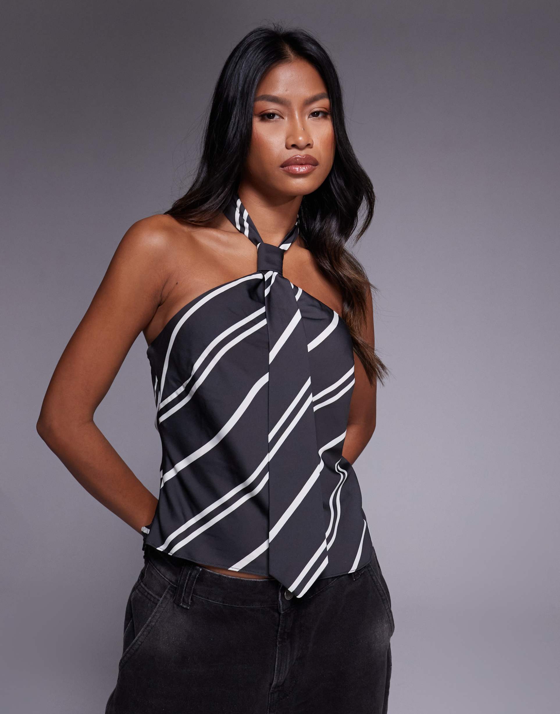 ASOS DESIGN HALTER TOP WITH TIE DETAIL IN STRIPES