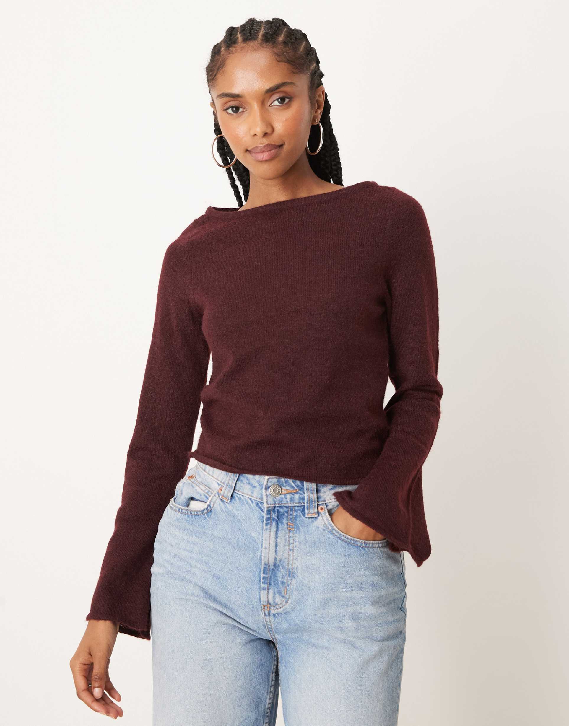 ASOS DESIGN KNIT RELAXED SLASH NECK TOP IN PLUM
