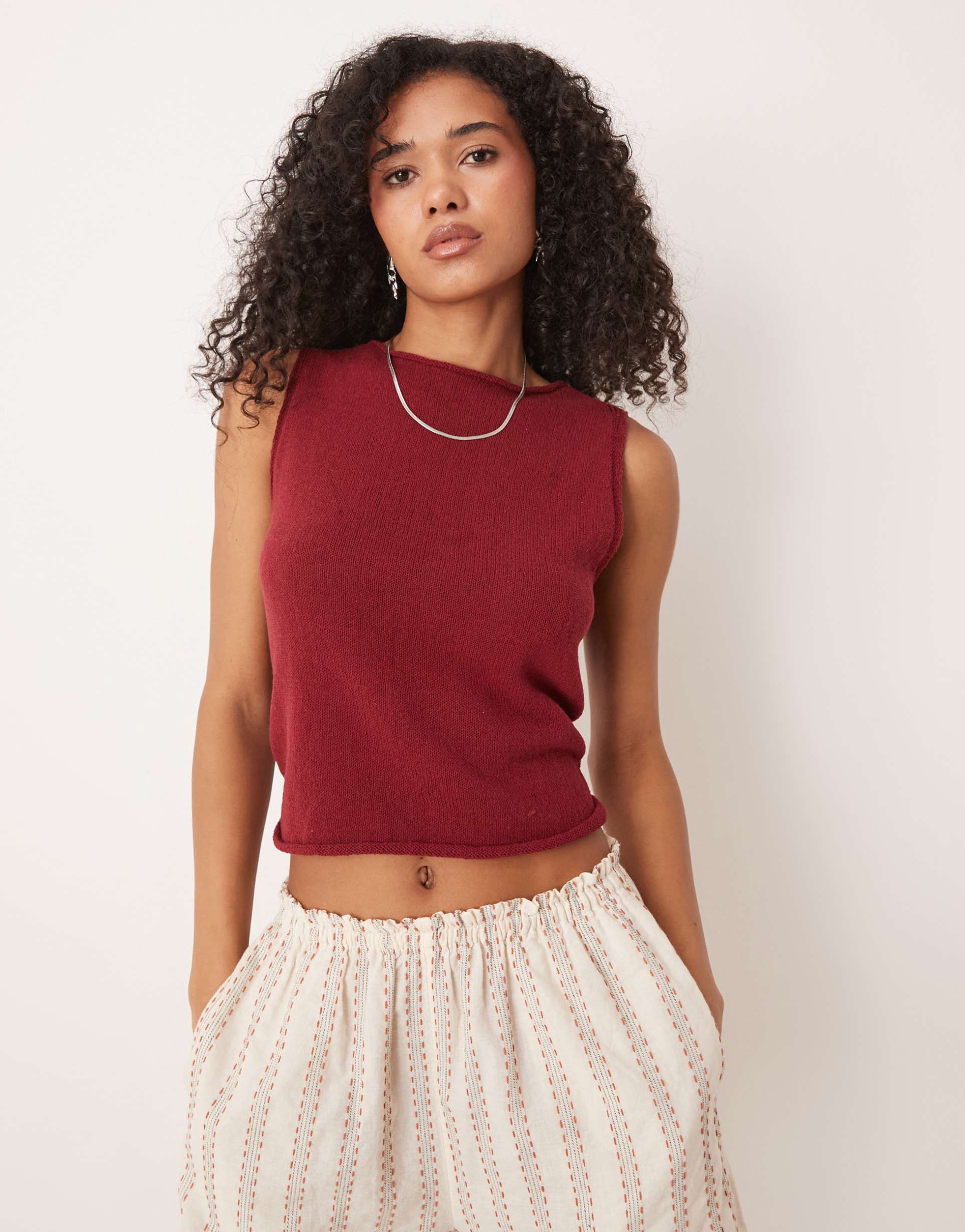ASOS DESIGN KNITTED TOP WITH LOW TWIST BACK IN BURGUNDY