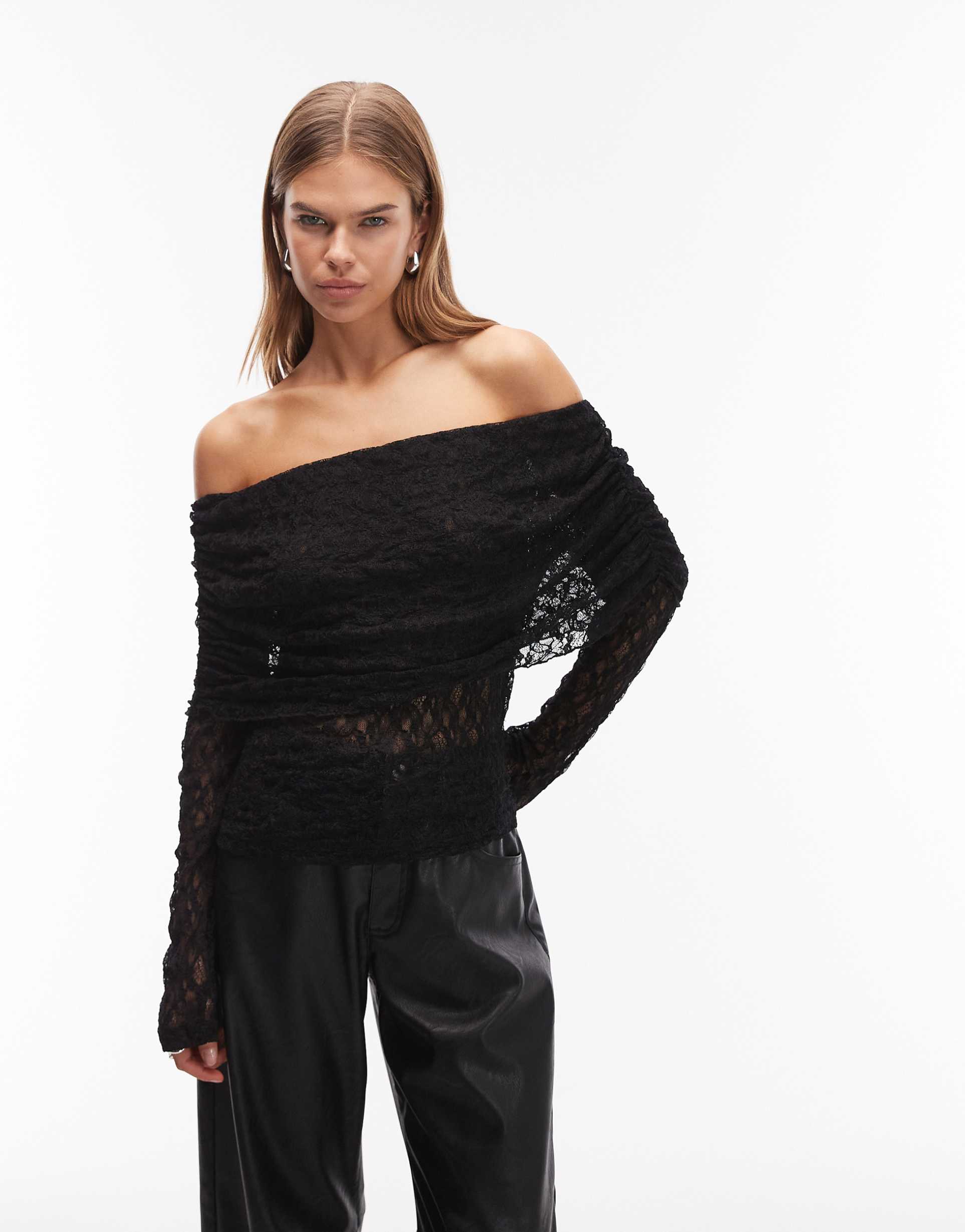 ASOS DESIGN LACE FOLD-OVER OFF-SHOULDER TOP IN BLACK