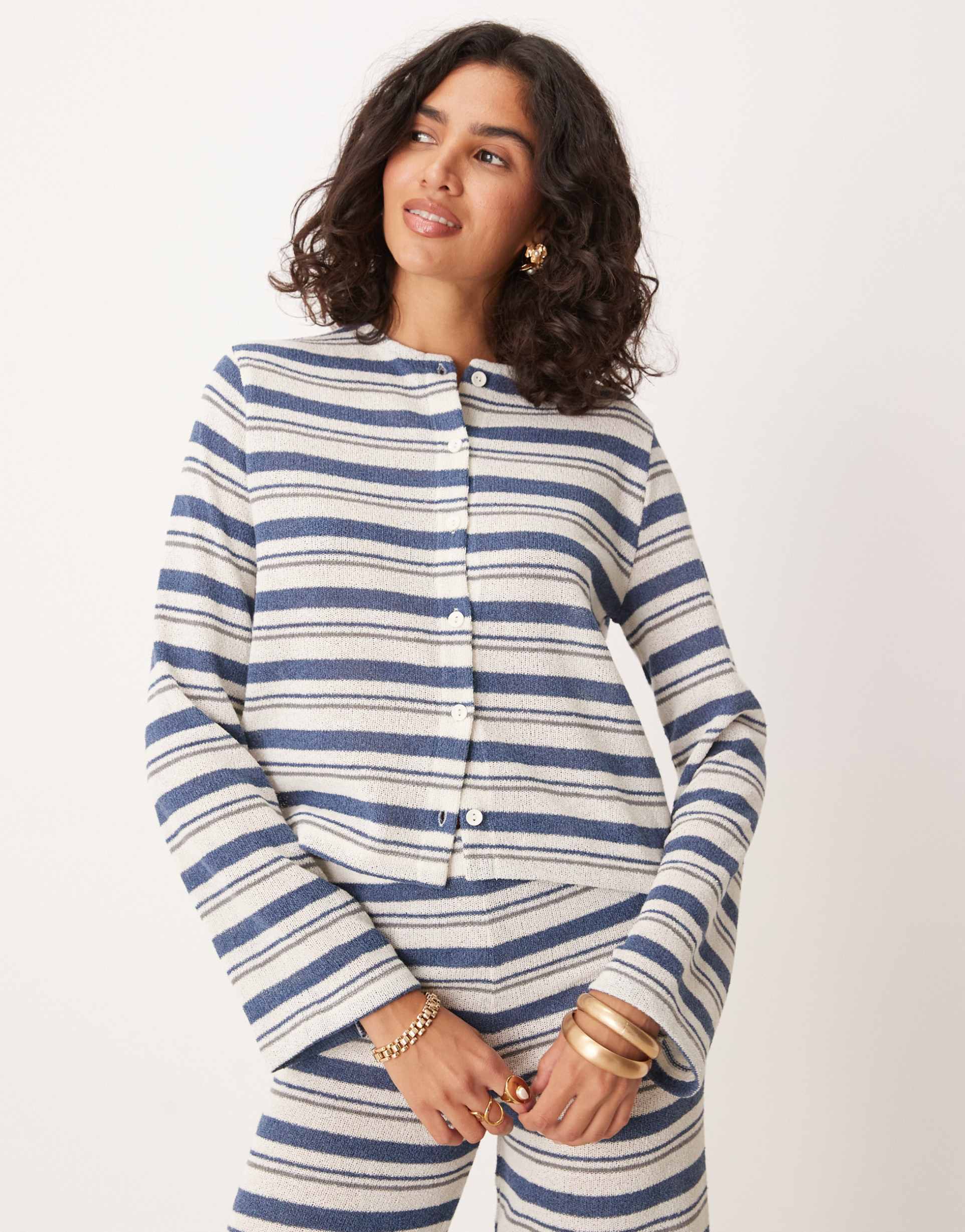 ASOS DESIGN LONG SLEEVE CUT AND SEW STRIPE THROUGH TOP IN IVORY - PART OF A SET