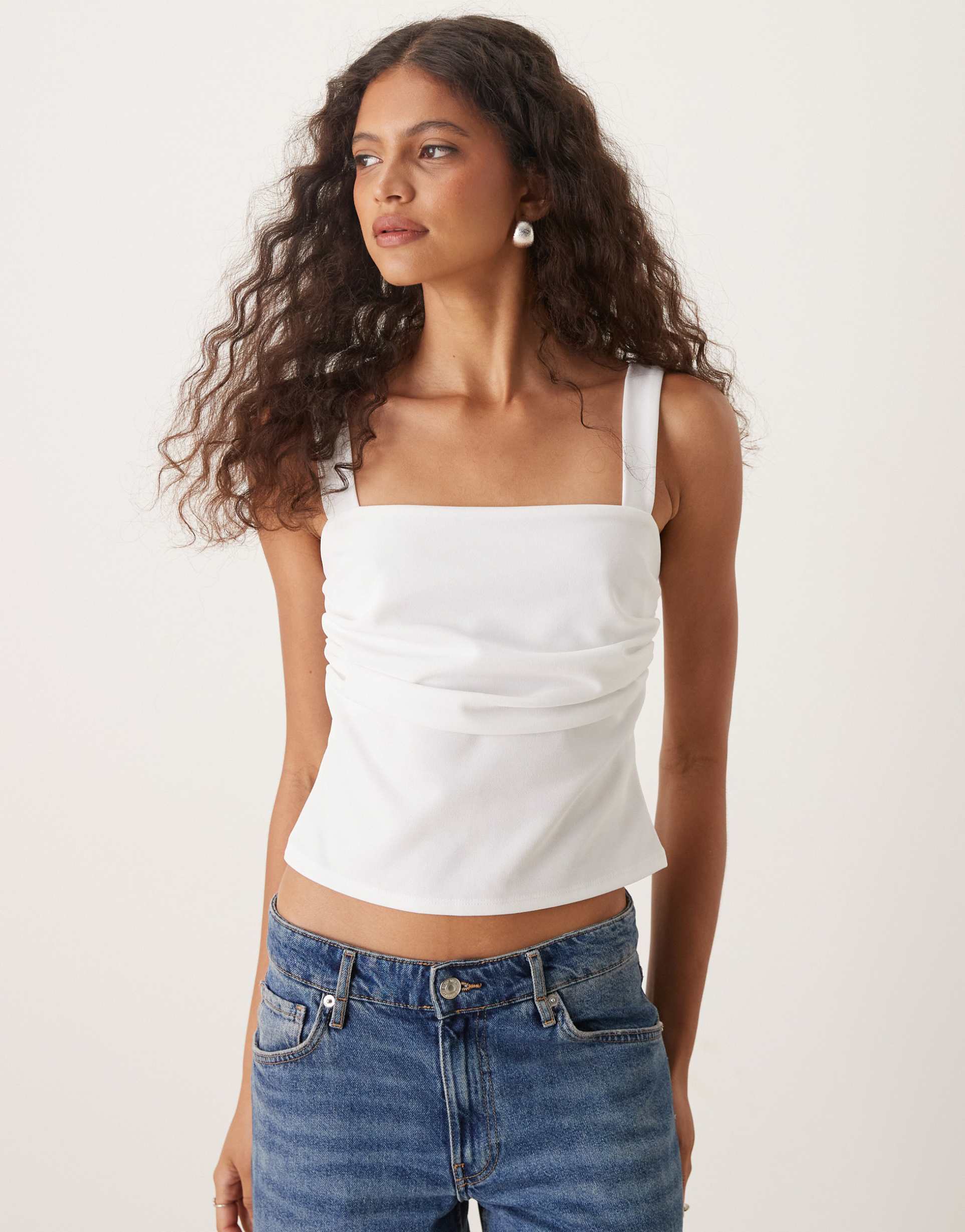 ASOS DESIGN PLEAT DETAIL SQUARE NECK TOP IN CREAM