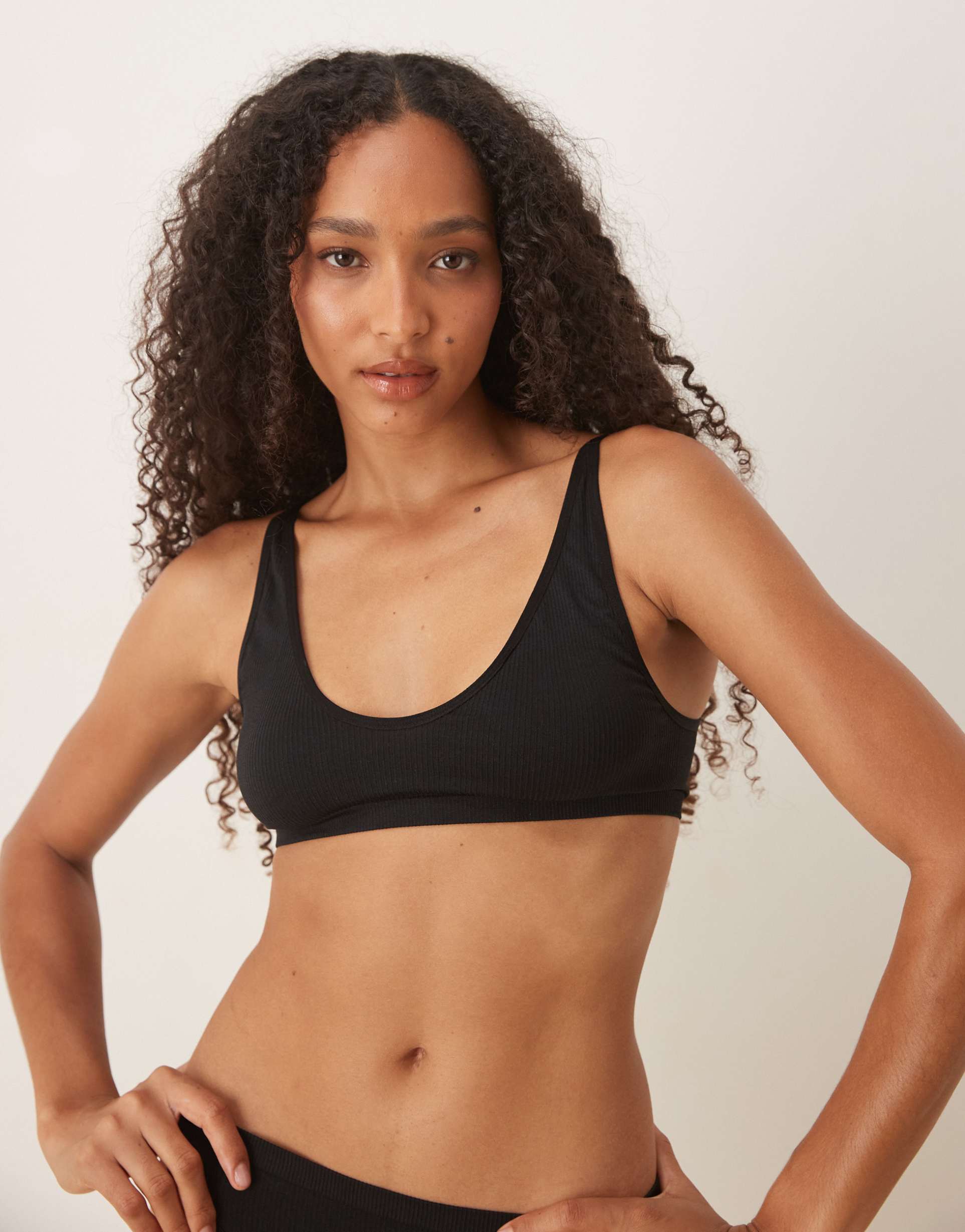 ASOS DESIGN RIBBED SCOOP NECK CROP TOP IN BLACK
