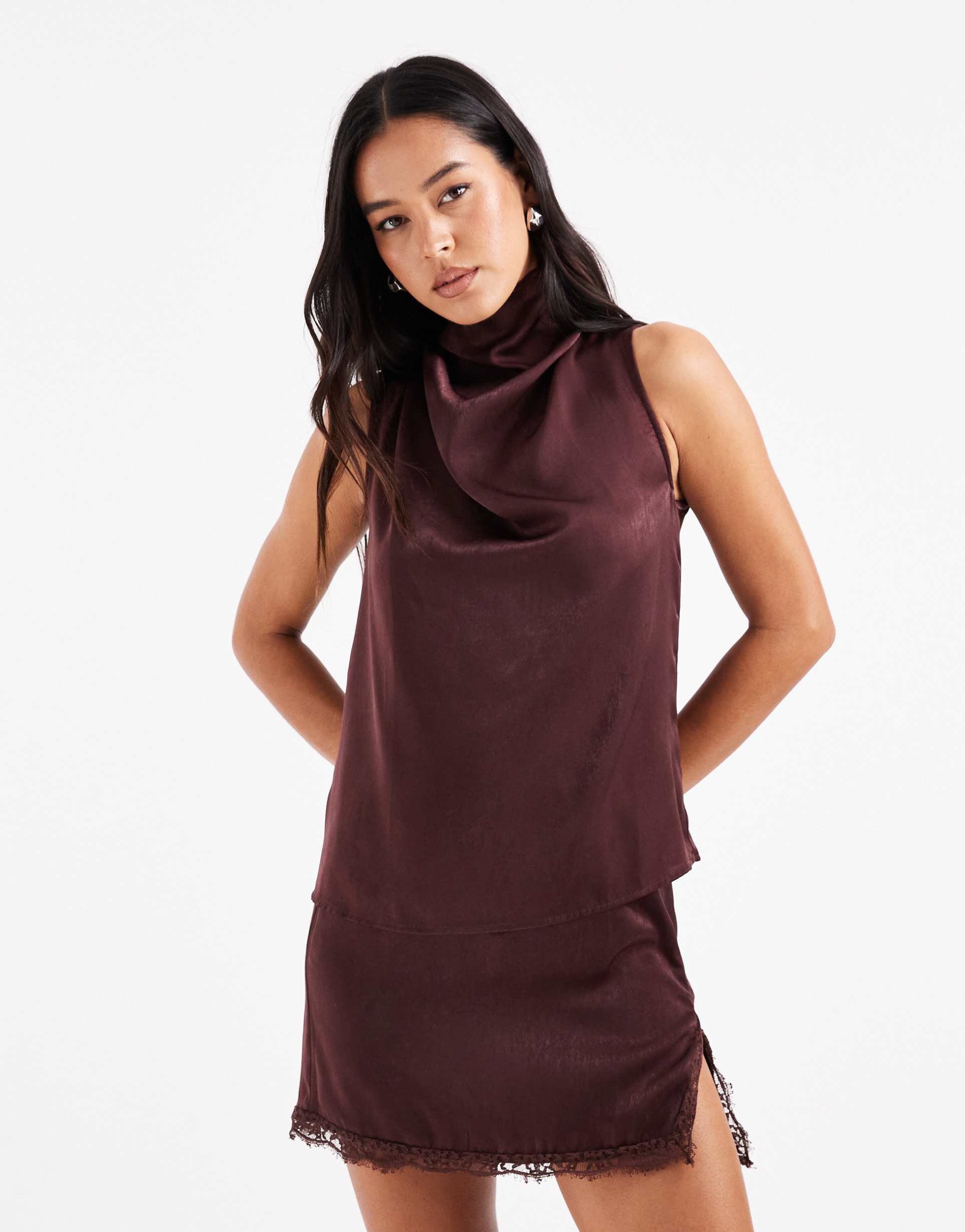 ASOS DESIGN SATIN DRAPE SLEEVELESS TOP