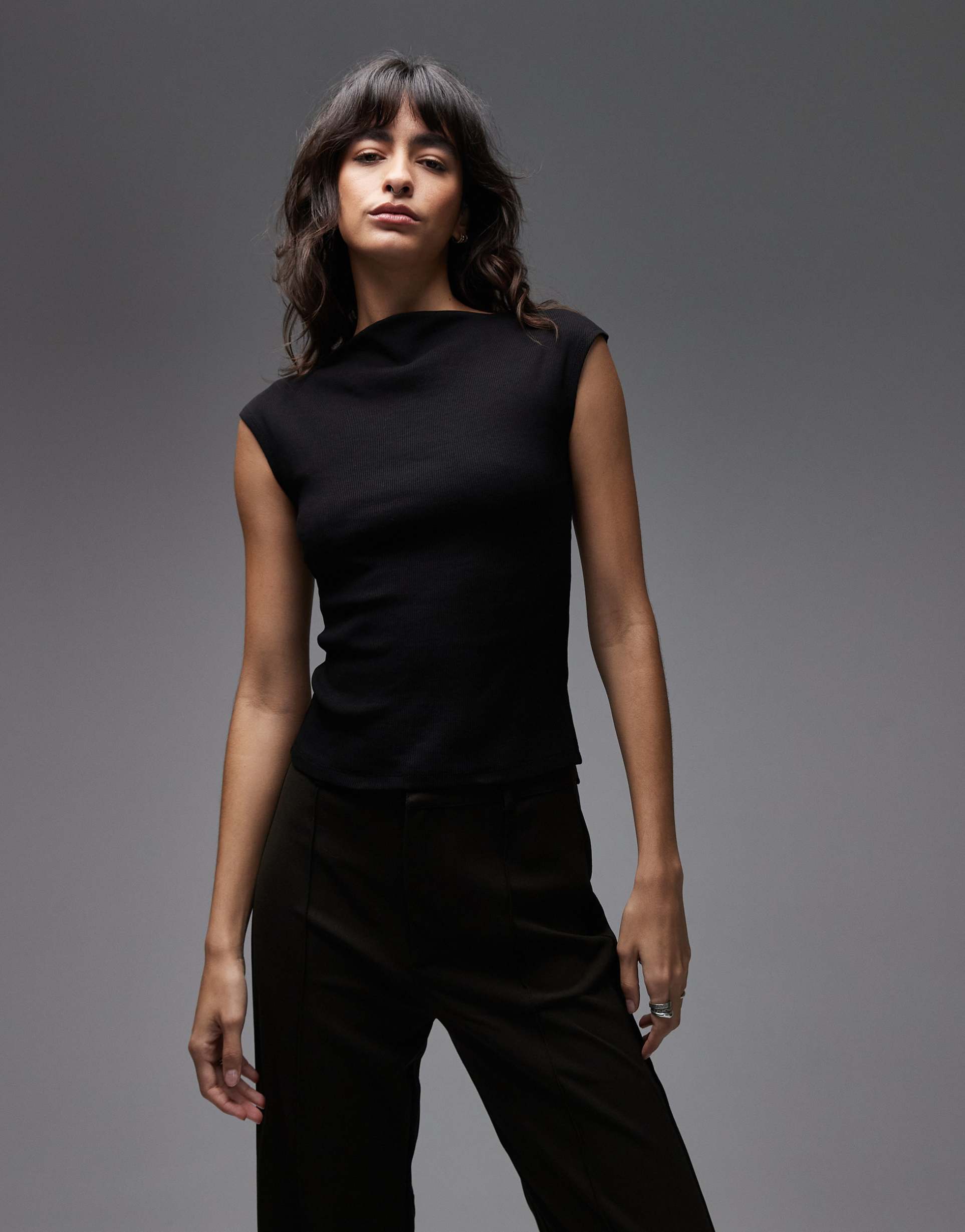 ASOS DESIGN SLASH NECK RIBBED TOP IN BLACK