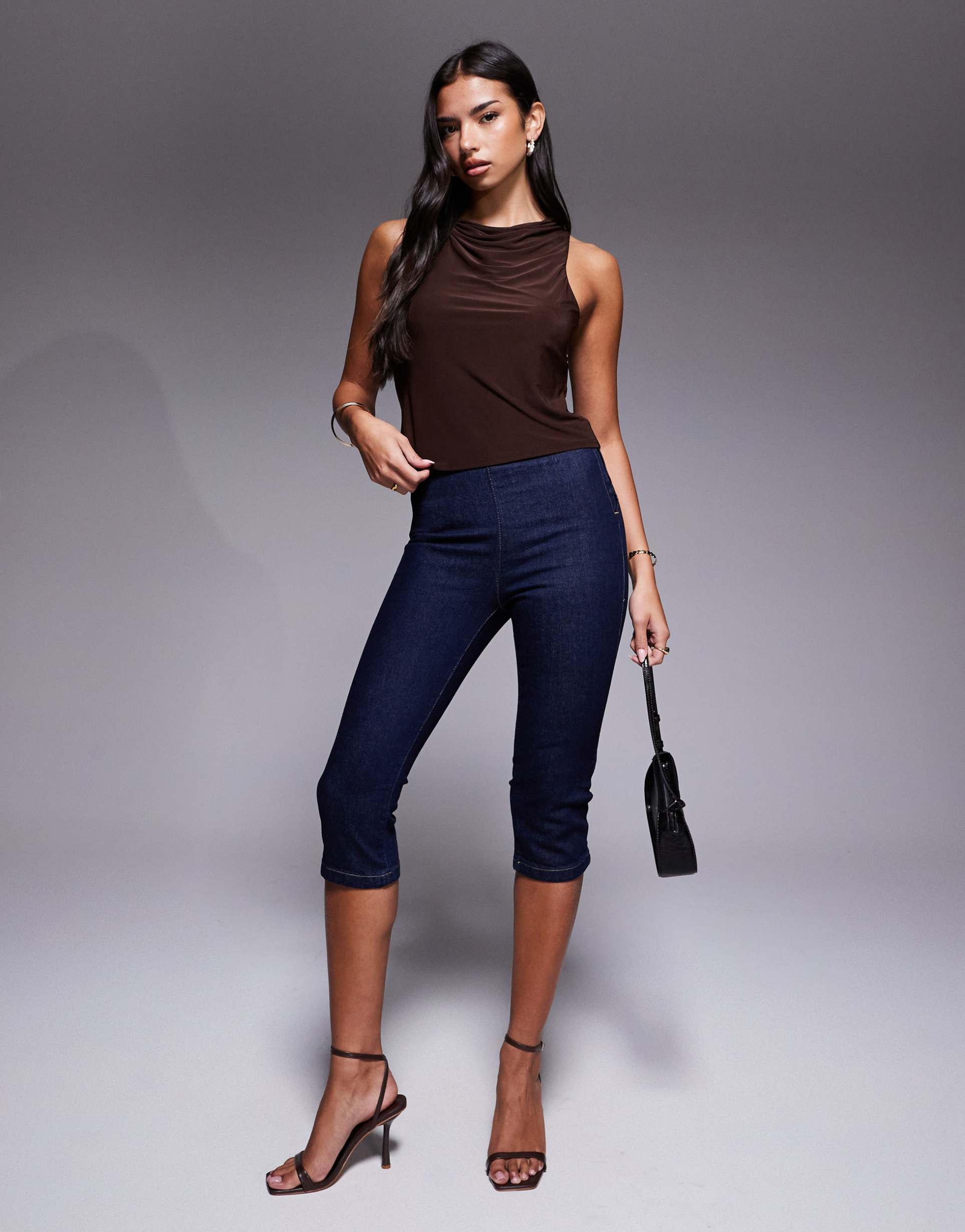 ASOS DESIGN SLINKY COWL NECK TANK TOP IN CHOCOLATE
