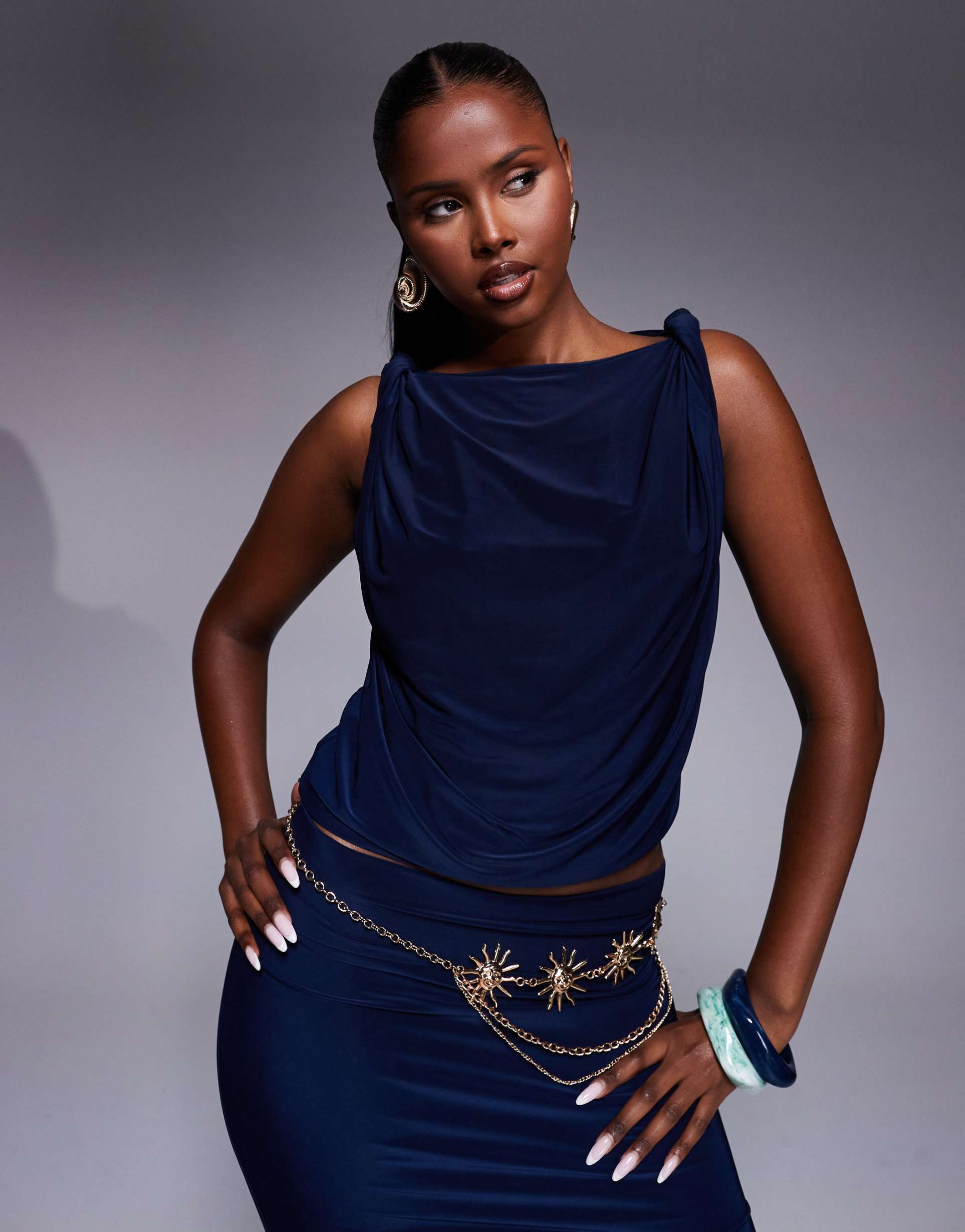 ASOS DESIGN SLINKY TWIST SHOULD DRAPE TOP IN NAVY - PART OF A SET