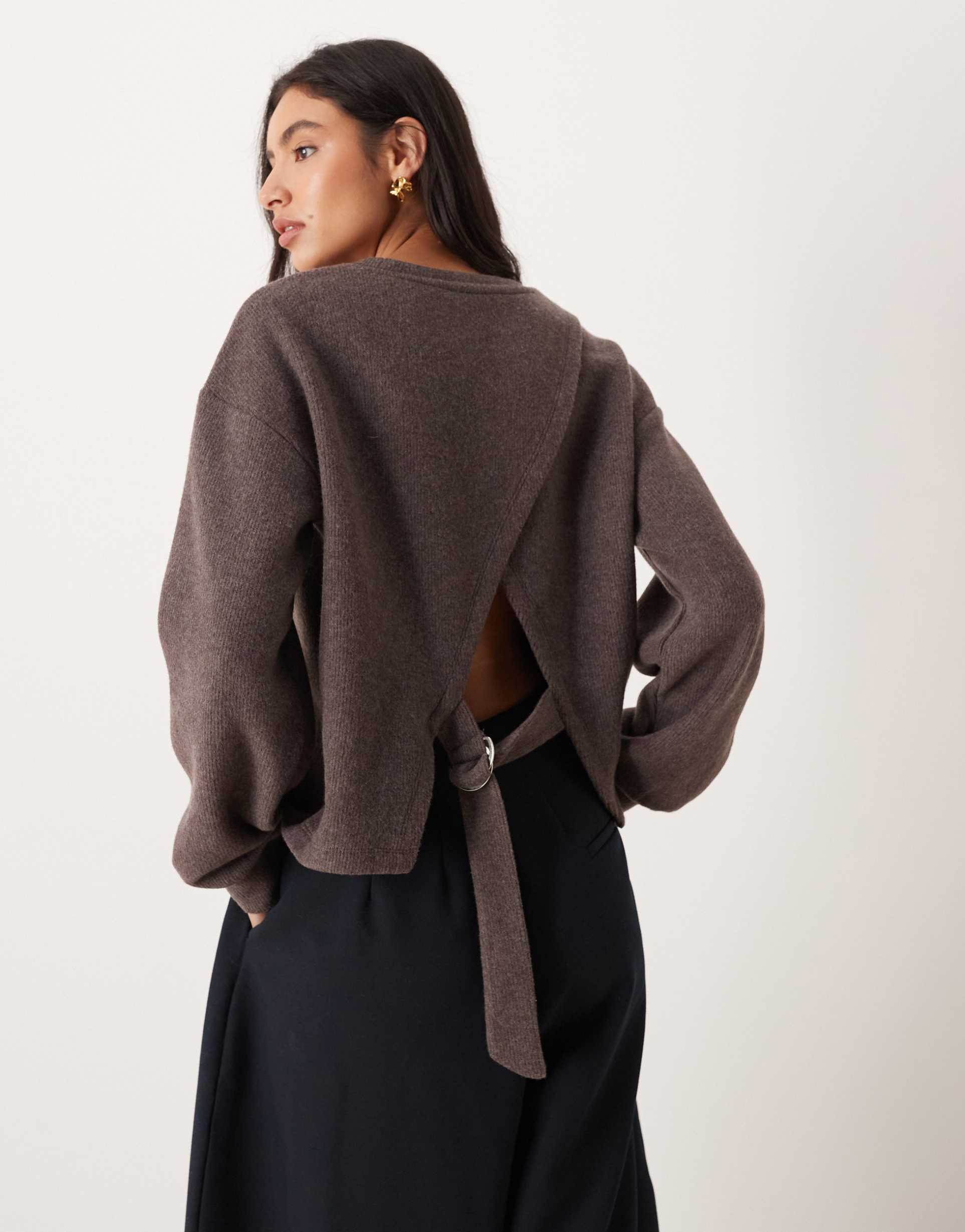 ASOS DESIGN SUPERSOFT BRUSHED CINCHED D-RING DETAIL TOP IN BROWN