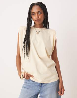 ASOS DESIGN TANK TOP WITH SHOULDER PADS IN BUTTERMILK