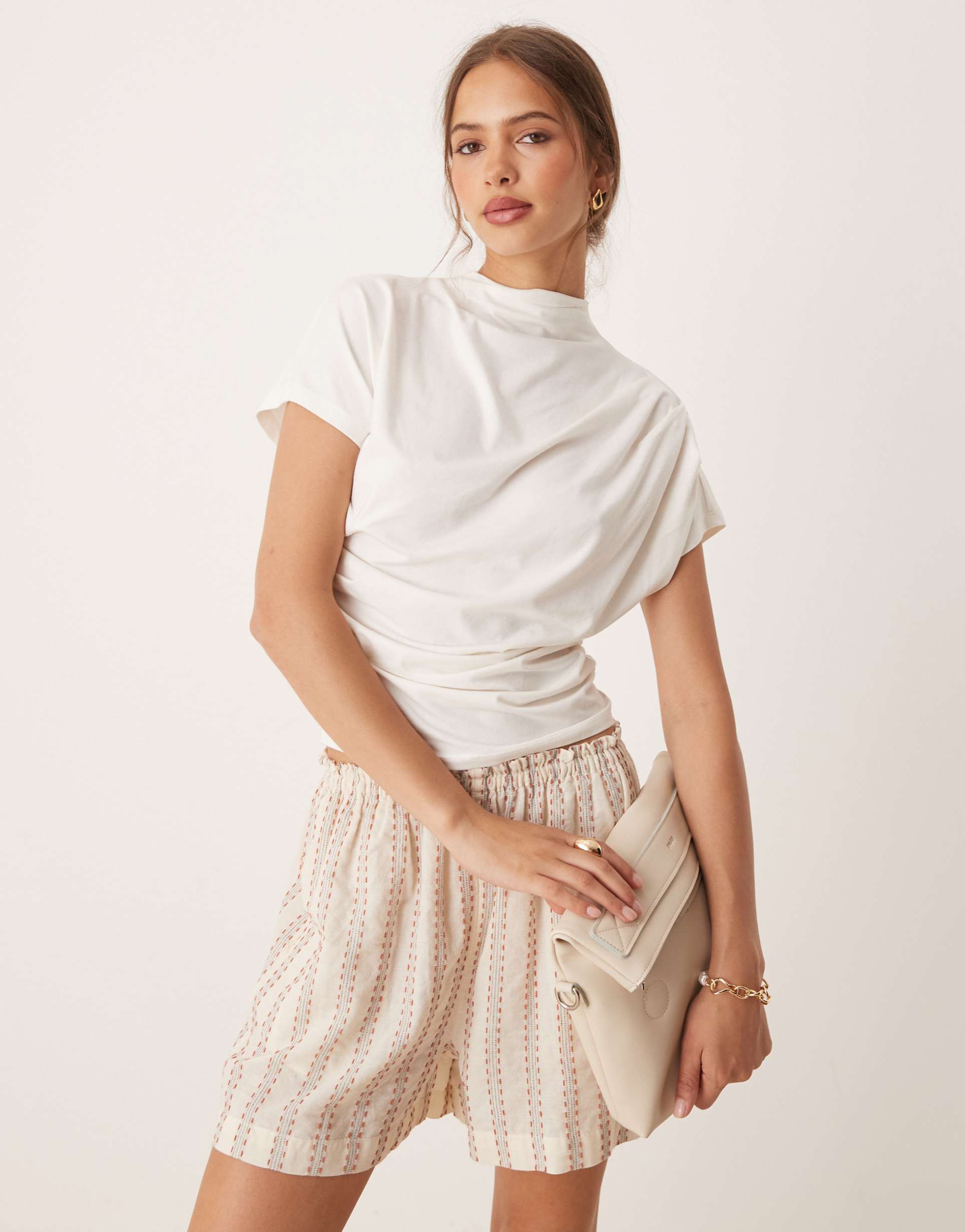 ASOS DESIGN TWIST SHOULDER DRAPEY TOP IN CREAM
