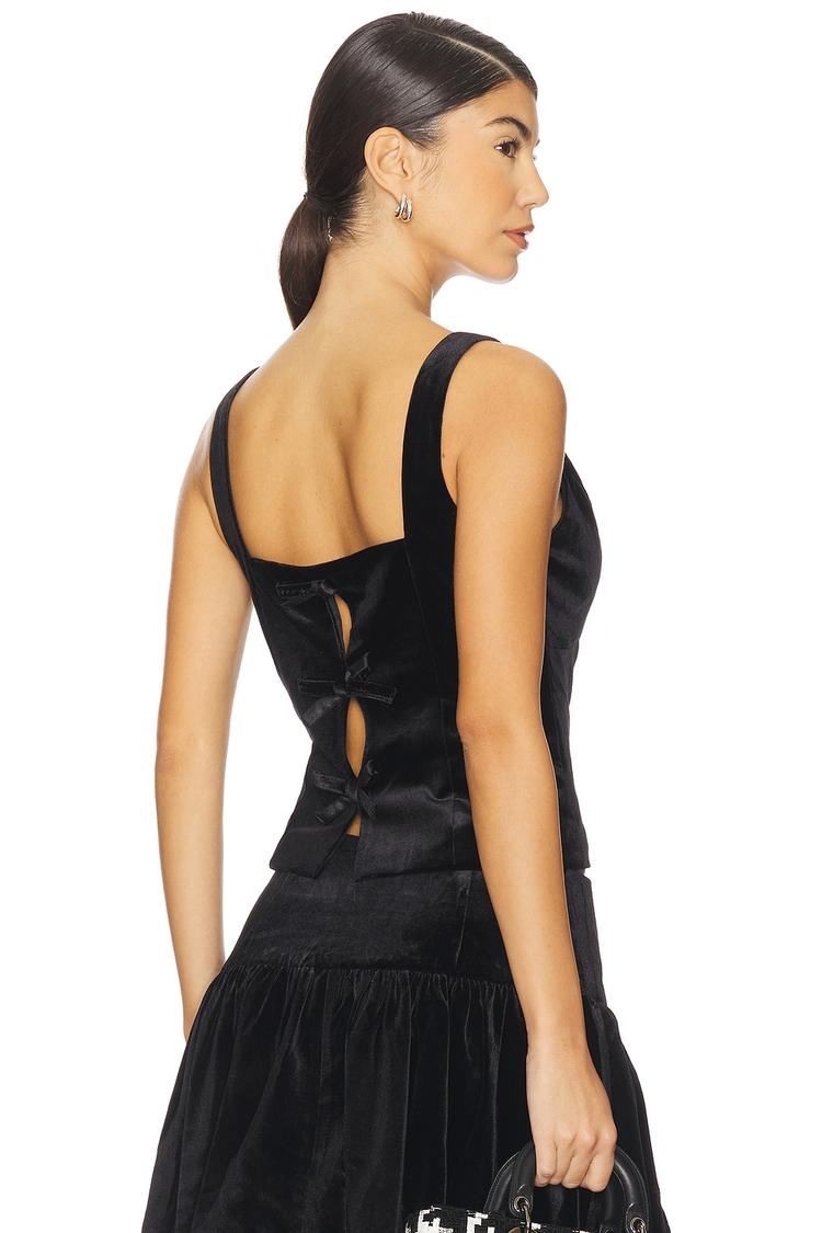 A sleek silhouette crafted in matte black polyester with elastane for a flattering fitted shape, this sleeveless tank top features wide straps and a classic round neckline. The hidden side zipper and subtle hook-and-eye closure at the back add refined functionality, while the keyhole back detail offers an elegant touch. Waist-length and modern, it pairs effortlessly for casual outings, date nights, or evening events, combining chic sophistication with comfortable wearability.