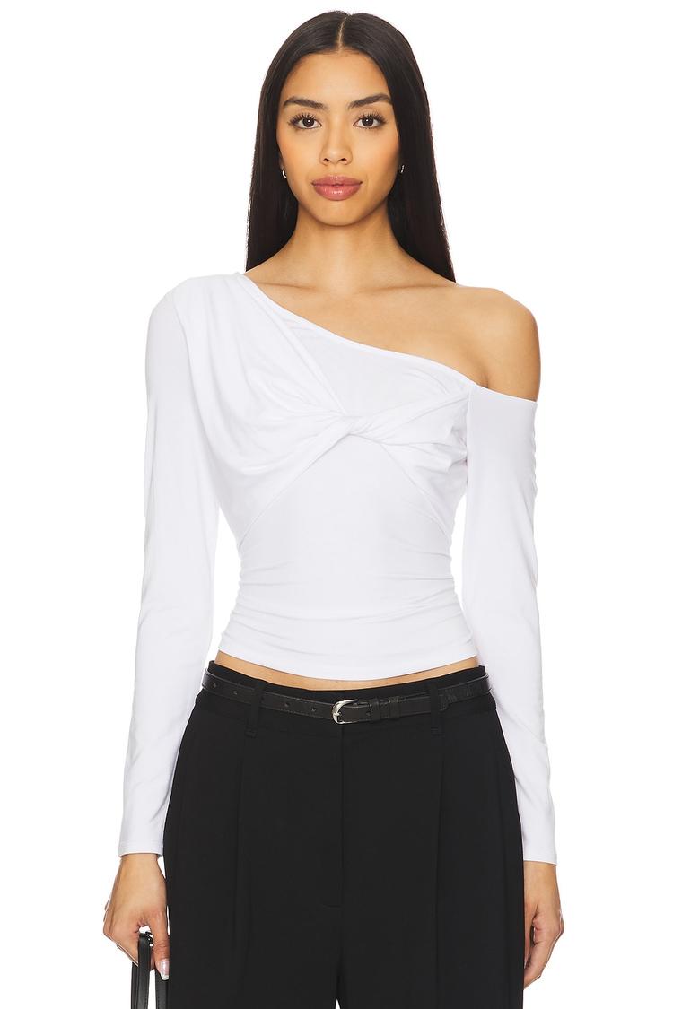 Softly draped front wrap detailing and an asymmetric neckline define this fitted, cropped wrap top crafted from a midweight rayon-elastane jersey fabric. The long sleeves and pullover styling ensure a sleek silhouette that transitions effortlessly from casual brunches and coffee runs to date nights and evening outings. Its modern and chic vibe combined with the flattering one-shoulder cut makes it a versatile addition to any contemporary wardrobe.