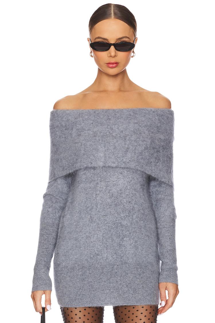 Soft cashmere knit with a relaxed silhouette defines this off-shoulder tunic, featuring a foldover neckline that adds a slouchy, effortless vibe. The long sleeves and ribbed trim borders lend a minimalist, casual chic feel, perfect for cooler autumn and winter days. Falling to a mini length, this piece pairs wonderfully with tights or leggings for versatile styling. Ideal for casual outings, everyday wear, or cozy loungewear, its pull-on slip-on design ensures comfort and ease. Embrace understated elegance in this cozy, fashion-forward knit tunic.
