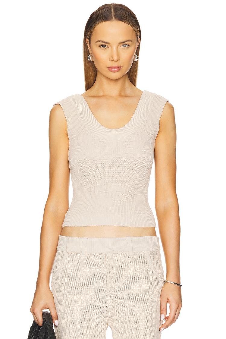 Soft ribbed cotton-nylon blend fabric shapes this fitted tank top in a waist-length silhouette, featuring wide straps and a flattering U-neckline. Its minimalist beige tone and clean design make it a versatile piece perfect for casual outings, everyday wear, or relaxed brunches. The ribbed collar adds subtle texture, enhancing the chic yet effortless aesthetic. Ideal for spring and summer seasons, this pullover style top pairs easily with a variety of bottoms for a polished, comfortable look.