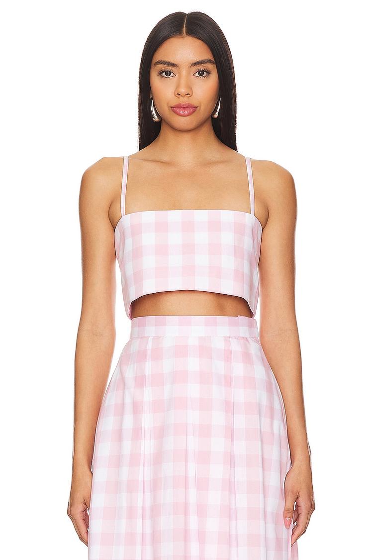 Crisp cotton poplin and a classic gingham check pattern define this cropped Walton Top. Featuring a straight neckline and adjustable spaghetti straps, it offers a regular fit that’s perfect for spring and summer days. The partial back loop button closure adds subtle charm while ensuring ease of wear. Ideal for casual outings, brunch dates, and vacation looks, this preppy and casual chic piece pairs effortlessly with high-waisted skirts or trousers for a fresh, timeless style.