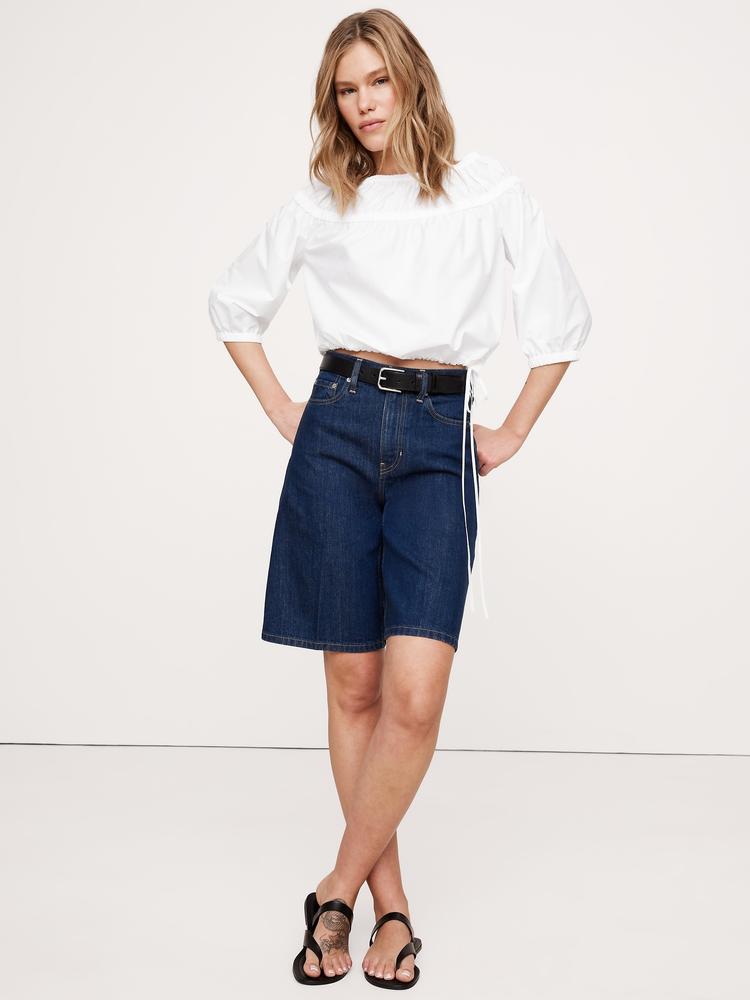 COTTON POPLIN RUCHED BUBBLE-HEM TOP