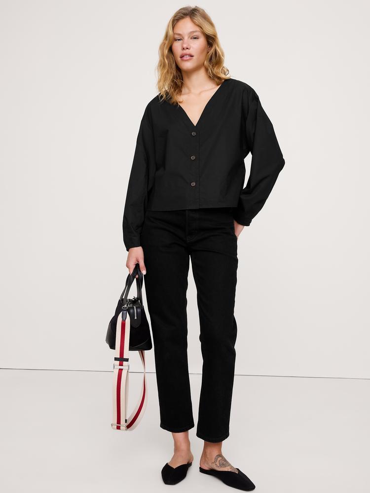 COTTON POPLIN VOLUME-SLEEVE TOP