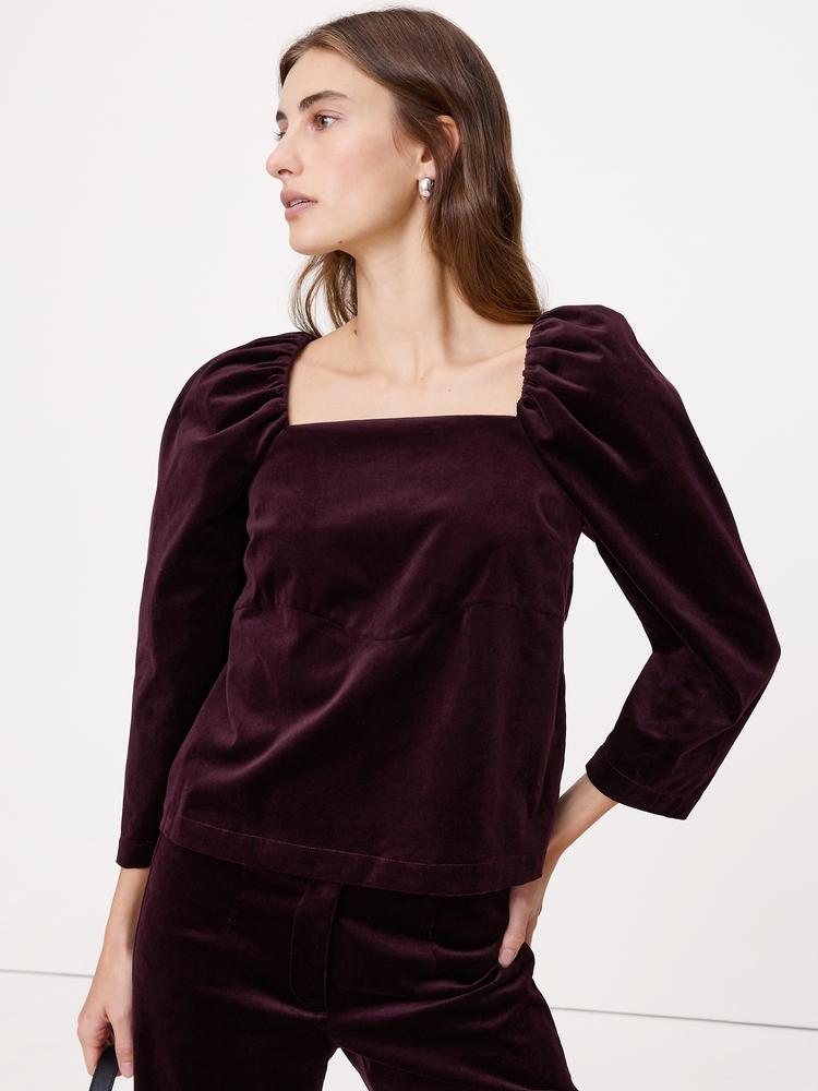 COTTON VELVET PUFF-SLEEVE TOP