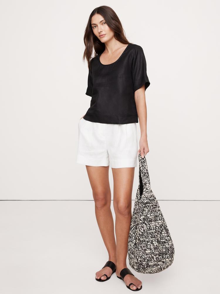 LINEN SCOOP-NECK TOP