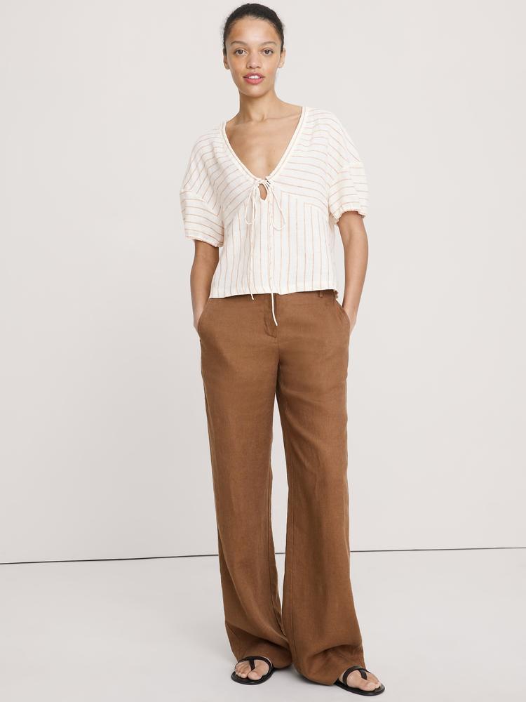 LINEN TIE-FRONT V-NECK TOP