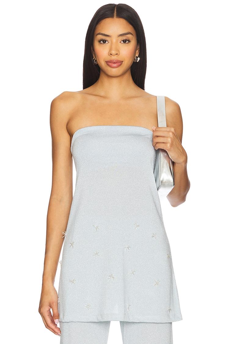 Soft shimmer and delicate beaded floral details elevate this strapless camisole to a chic staple. Crafted from midweight metallic jersey fabric with a relaxed fit, it features a straight neckline and hip-length silhouette for versatile styling. Perfect for casual days, brunch dates, or night outs, this lightweight top offers comfort and subtle glamour with its built-in shelf bra and pull-on design. Ideal for spring through autumn, it pairs seamlessly with layered looks or as a standout piece on its own.