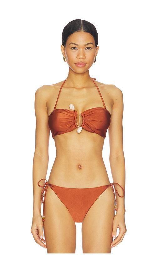 BARDOT RYMONA BANDEAU BIKINI TOP IN RUST.