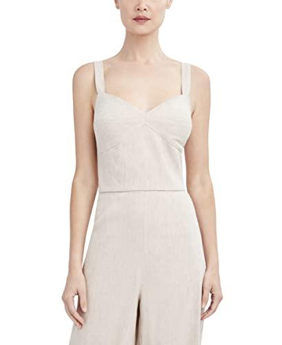 BCBGMAXAZRIA WOMEN'S SLIM FIT SWEETHEART NECK SMOCKED BACK CROP TOP, TAN STRIPE, X-LARGE