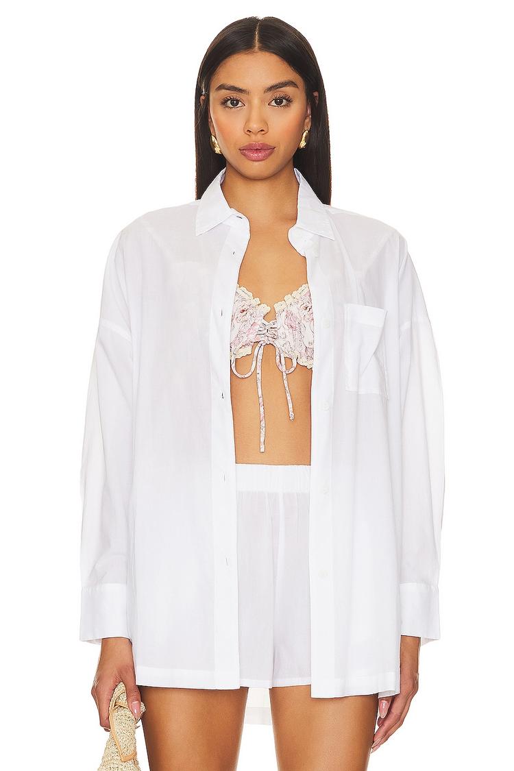 Effortless and breezy, this thigh-length white oversized shirt is crafted from lightweight cotton for a soft, breathable feel. Featuring a classic collar, long cuffed sleeves, and a front button closure, it offers a relaxed loose fit perfect for warm weather. The minimalistic style includes a breast slip pocket adding subtle detail. Ideal for casual outings, beach days, and vacation wear, this versatile piece combines comfort and chic simplicity for easy layering or standalone wear.