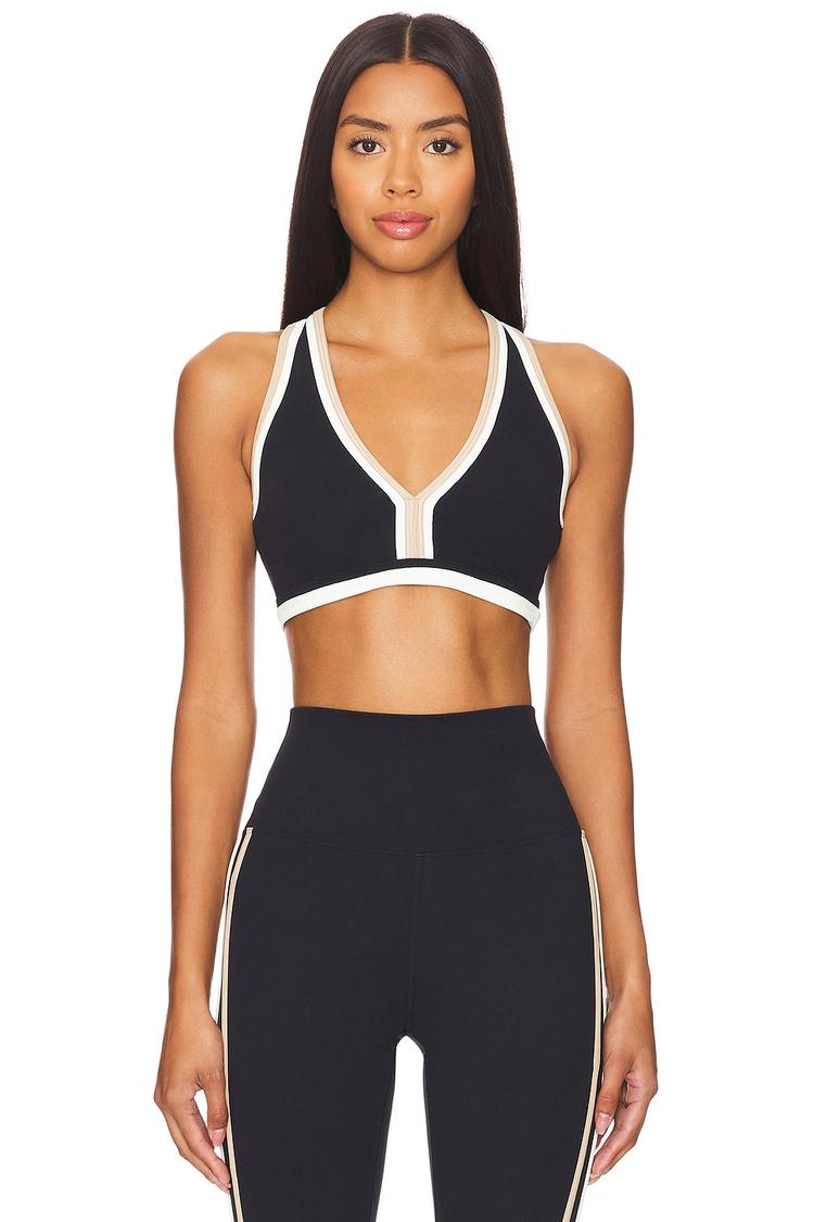 A sleek bralette with a racerback silhouette and contrasting white trim, crafted from a stretchy nylon and elastane blend for a close, comfortable fit. The cropped length and V-neckline create a sporty yet minimalist look, perfect for workout sessions, athleisure styling, or casual outings. Designed with detachable padded cups and easy pullover wear, this top blends functionality with clean, modern lines ideal for all weather seasons.