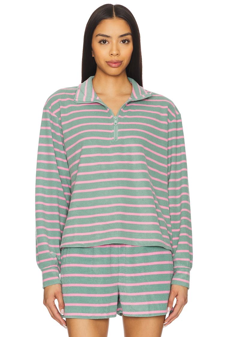Soft stripes in matte gray and pink drape comfortably in this relaxed-fit Henley top crafted from heavyweight terrycloth fabric. Featuring a classic polo collar with a partial front zipper closure and long regular sleeves, it offers a casual chic vibe perfect for loungewear, travel, and everyday casual outings. The hip-length hemline and cozy material make it ideal for all-weather wear, blending minimalist style with comfort effortlessly.