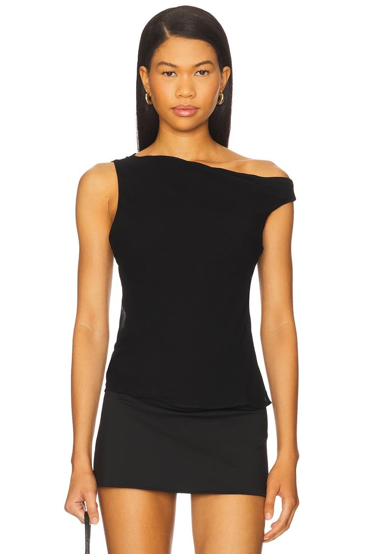 Lightweight mesh fabric and a semi-sheer finish define this sleek black shell top with a striking asymmetric neckline and one-shoulder strapless styling. Its slim fit and hip-length silhouette create a modern, sexy look perfect for spring and summer nights out, casual gatherings, and date nights. The pullover design ensures easy wear, while the sheer texture adds a subtle allure, making it a versatile piece for chic, confident styling across various occasions.