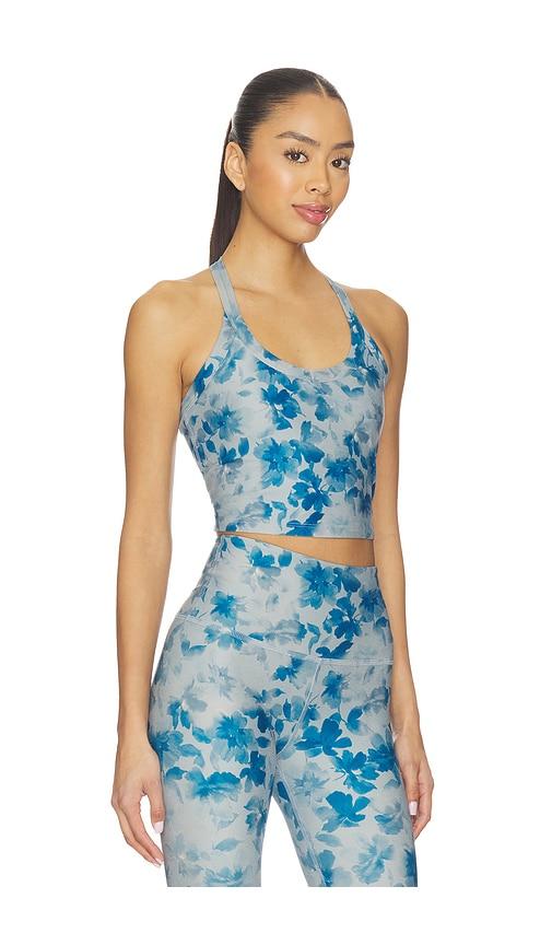 BEYOND YOGA SOFTMARK ON THE UP CROPPED TANK TOP IN BLUE.