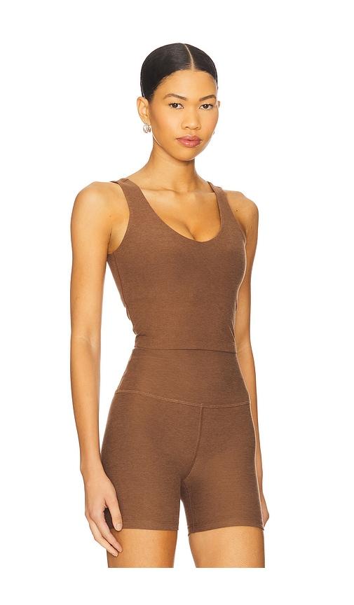 BEYOND YOGA SPACEDYE GOOD DAY CROPPED TANK TOP IN CHOCOLATE.