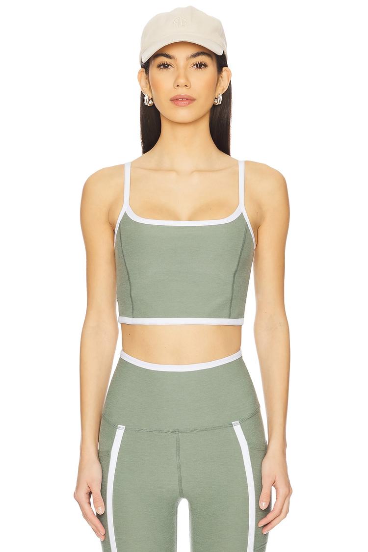 Softly muted sage green meets crisp white contrast trim in this fitted, cropped tank top designed for ease and style. Crafted from a stretchy polyester-elastane blend, it features a square neckline and delicate spaghetti straps that highlight the shoulders. The built-in shelf bra offers support while maintaining a streamlined silhouette. Ideal for workouts, athleisure looks, casual outings, or travel, this minimalist piece blends comfort with chic functionality for versatile everyday wear.