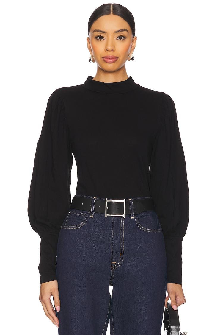 LONG SLEEVE SHIRRED SLEEVE MOCKNECK TOP