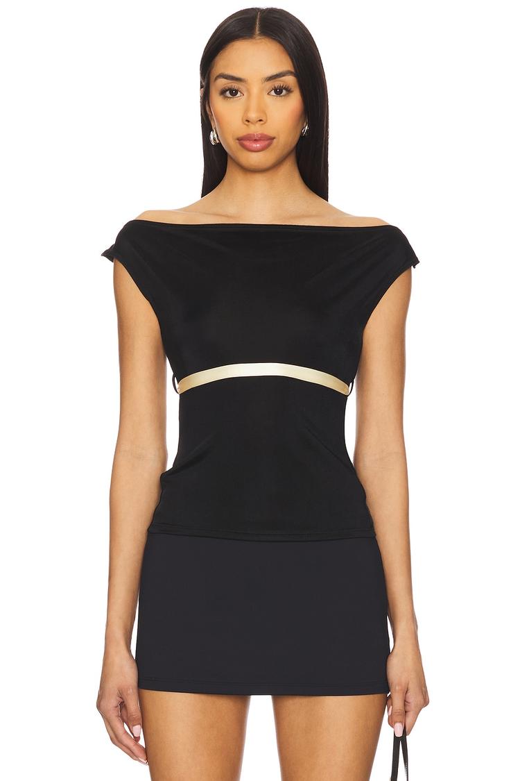 Lightweight draped viscose with a touch of silk crafts this elegant shell top featuring a classic boatneck and cap sleeves. Its slim fit and hip length silhouette are enhanced by a removable off-white waist tie that adds subtle definition and versatility. Perfect for casual outings, brunch dates, and night outs, this minimalist piece blends comfort and style seamlessly for spring and summer wardrobes.