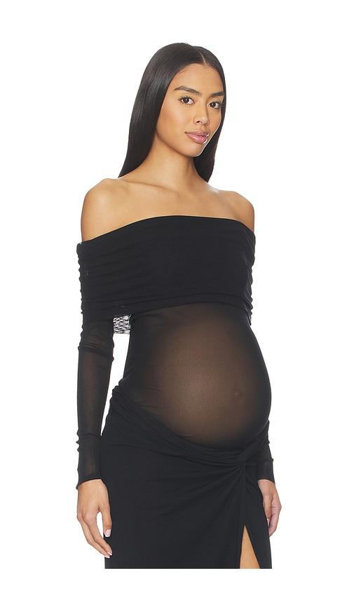 BUMPSUIT OFF THE SHOULDER SOFT MESH TOP IN BLACK.