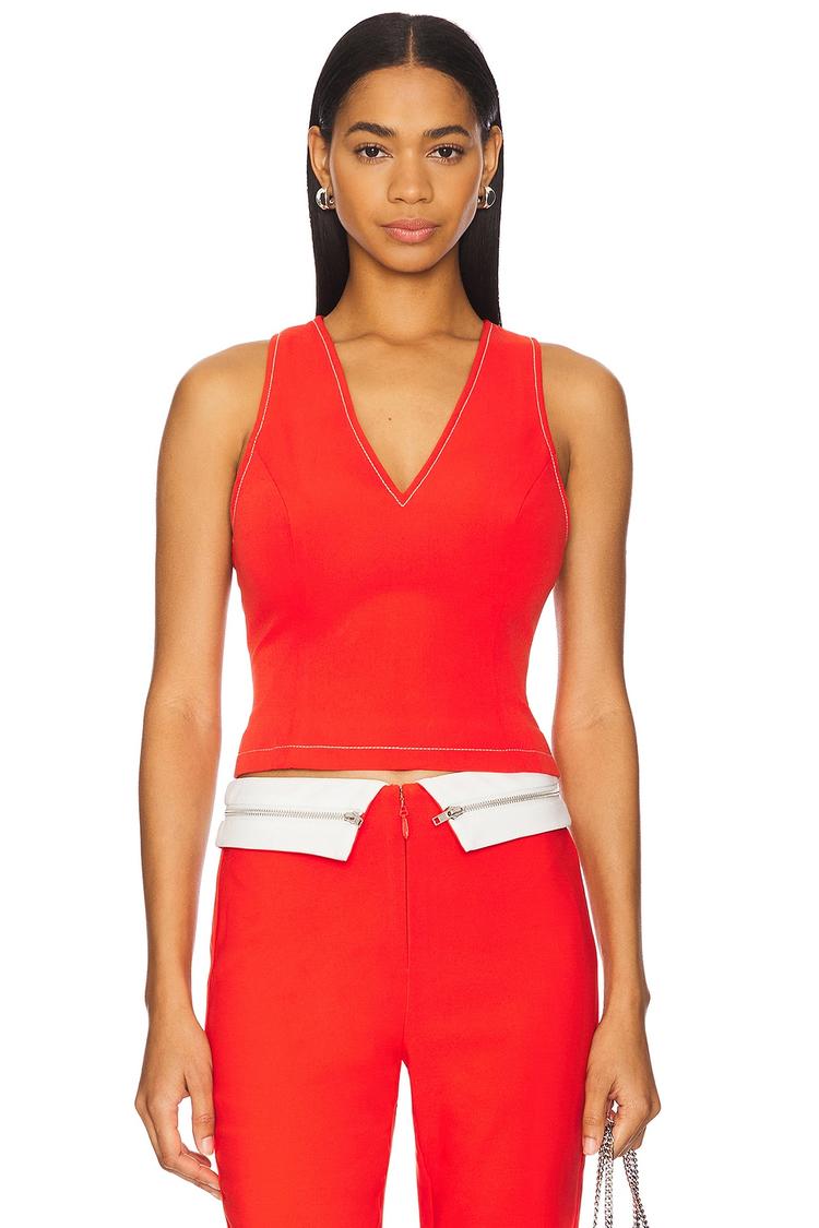 bright red tank top