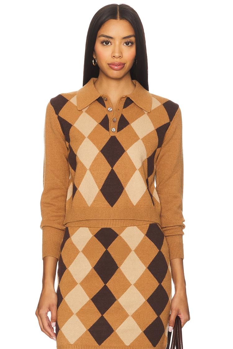 Rich matte tan hues combine with a timeless argyle pattern in this midweight fully fashioned knit Dawn Polo. Featuring a classic polo collar, long sleeves with ribbed trim at the collar, cuffs, and hem, this hip-length knit offers a regular fit that’s perfect for casual, business casual, and brunch occasions. Crafted from a viscose, polyester, and nylon blend, it provides cozy warmth during autumn and winter while maintaining breathable comfort in spring. The partial front button closure adds classic detailing to this preppy and minimalist staple.
