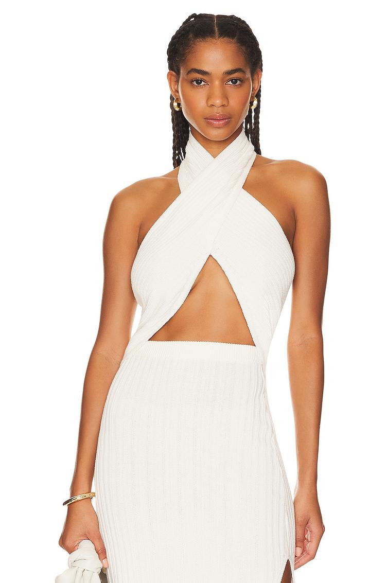Crisp white fabric with a fitted silhouette defines this chic camisole featuring a halter neck and sleeveless style. The eye-catching cut-out at the front adds a daring edge, while the cropped length enhances its modern appeal. Crafted from a blend of polyester, lyocell, linen, and nylon, it offers breathable comfort ideal for spring and summer. This versatile piece is perfect for casual outings, brunches, or night outs, combining sexy design with practical hook closure at the collar for easy wear.